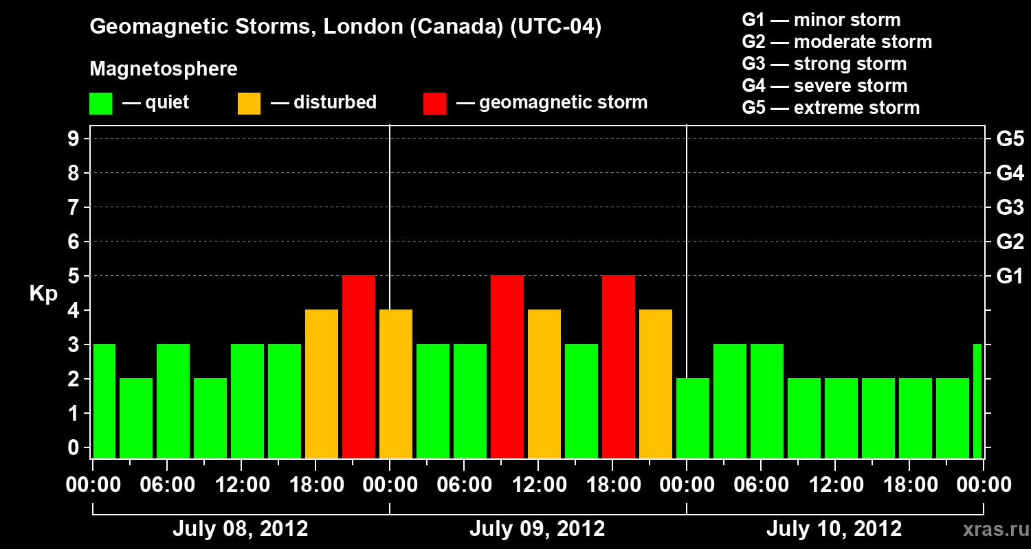 Geomagnetic storms in London (Canada) — Jul 10, 2012