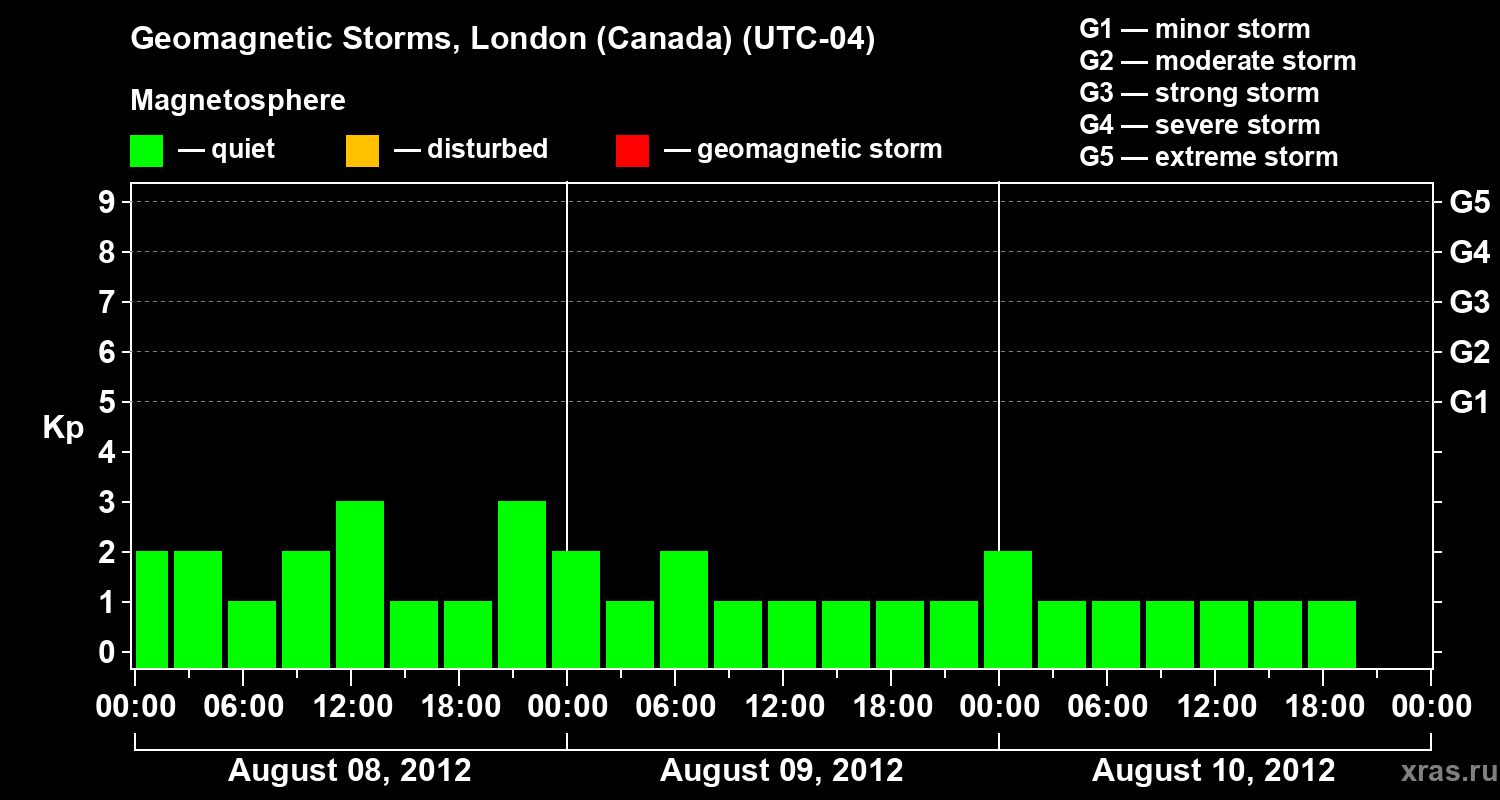 Geomagnetic storms in London (Canada) — Aug 10, 2012