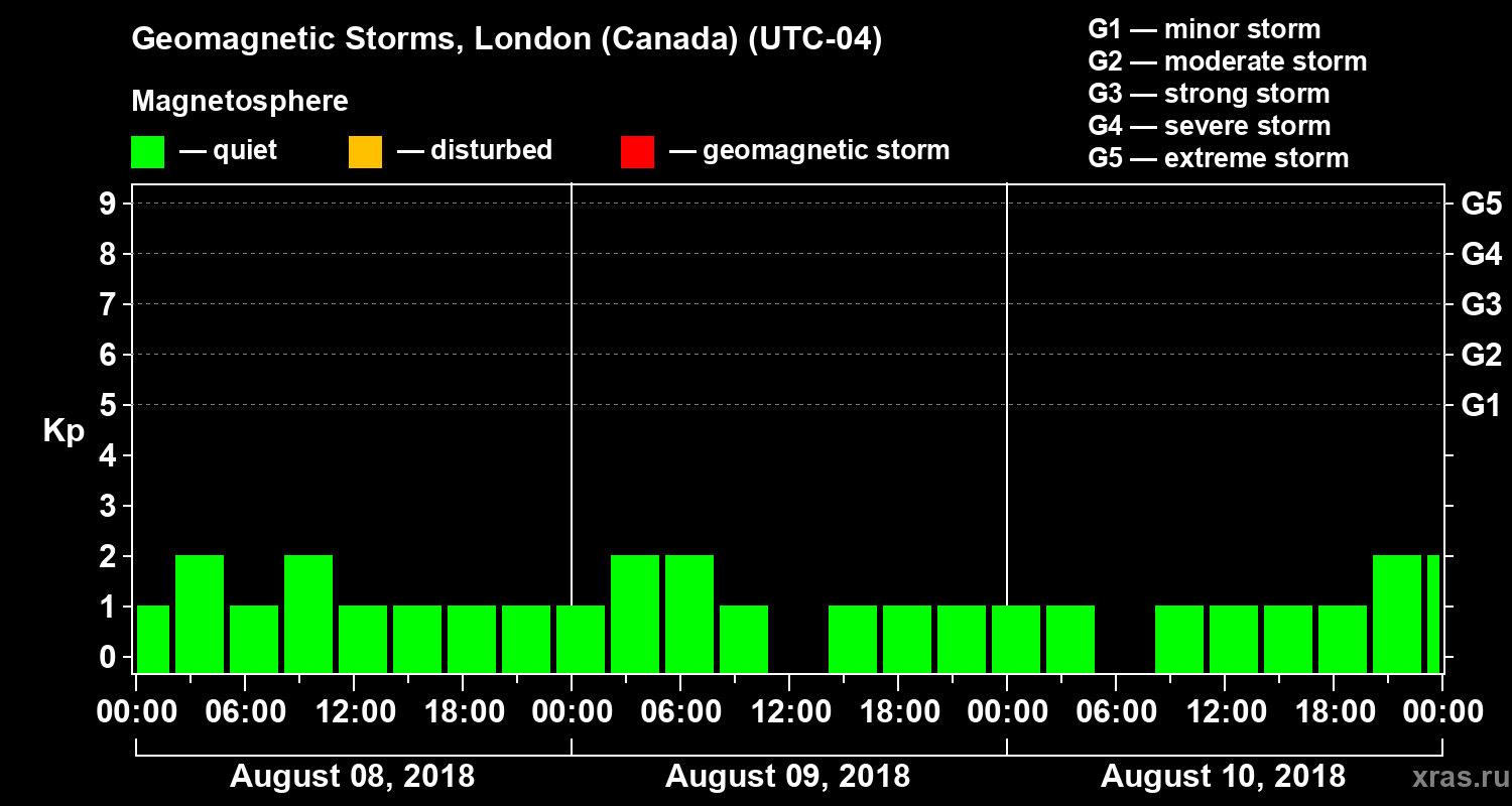 Geomagnetic storms in London (Canada) — Aug 10, 2018