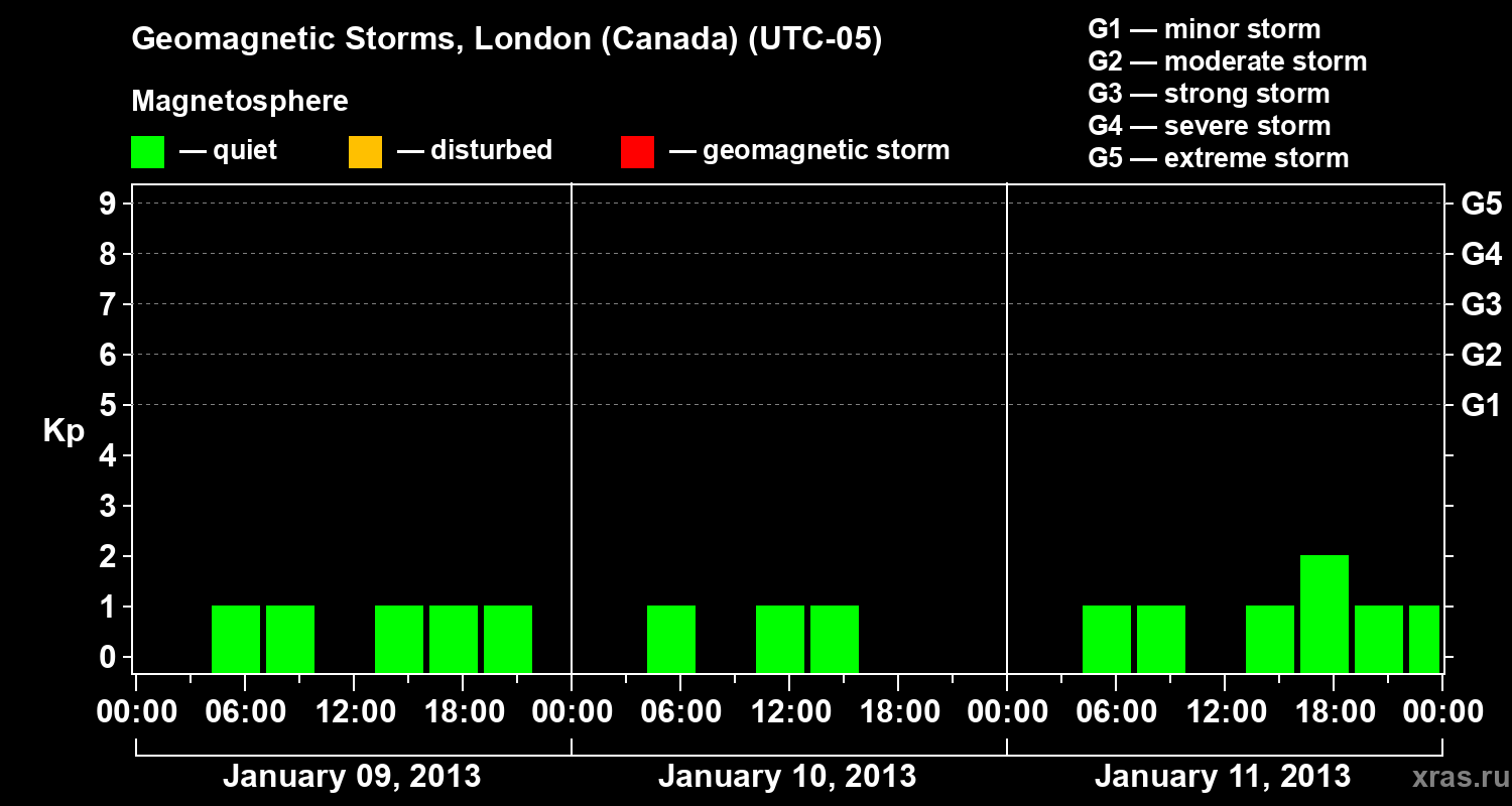 Geomagnetic storms in London (Canada) — Jan 11, 2013