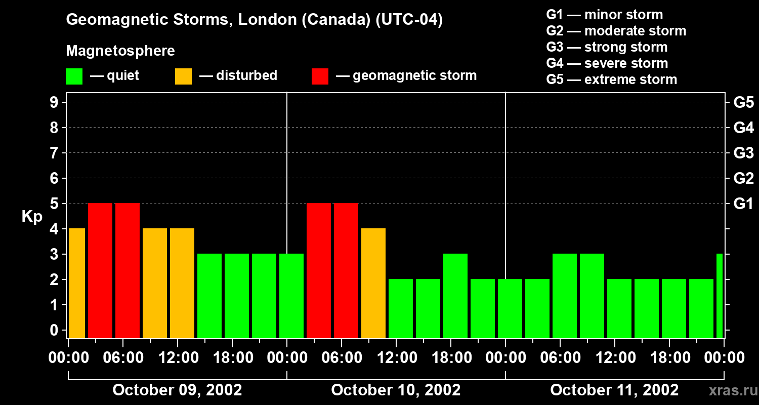 Geomagnetic storms in London (Canada) — Oct 11, 2002