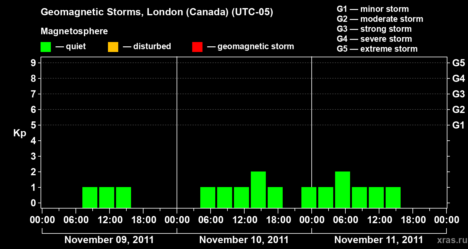 Geomagnetic storms in London (Canada) on Nov 11, 2011