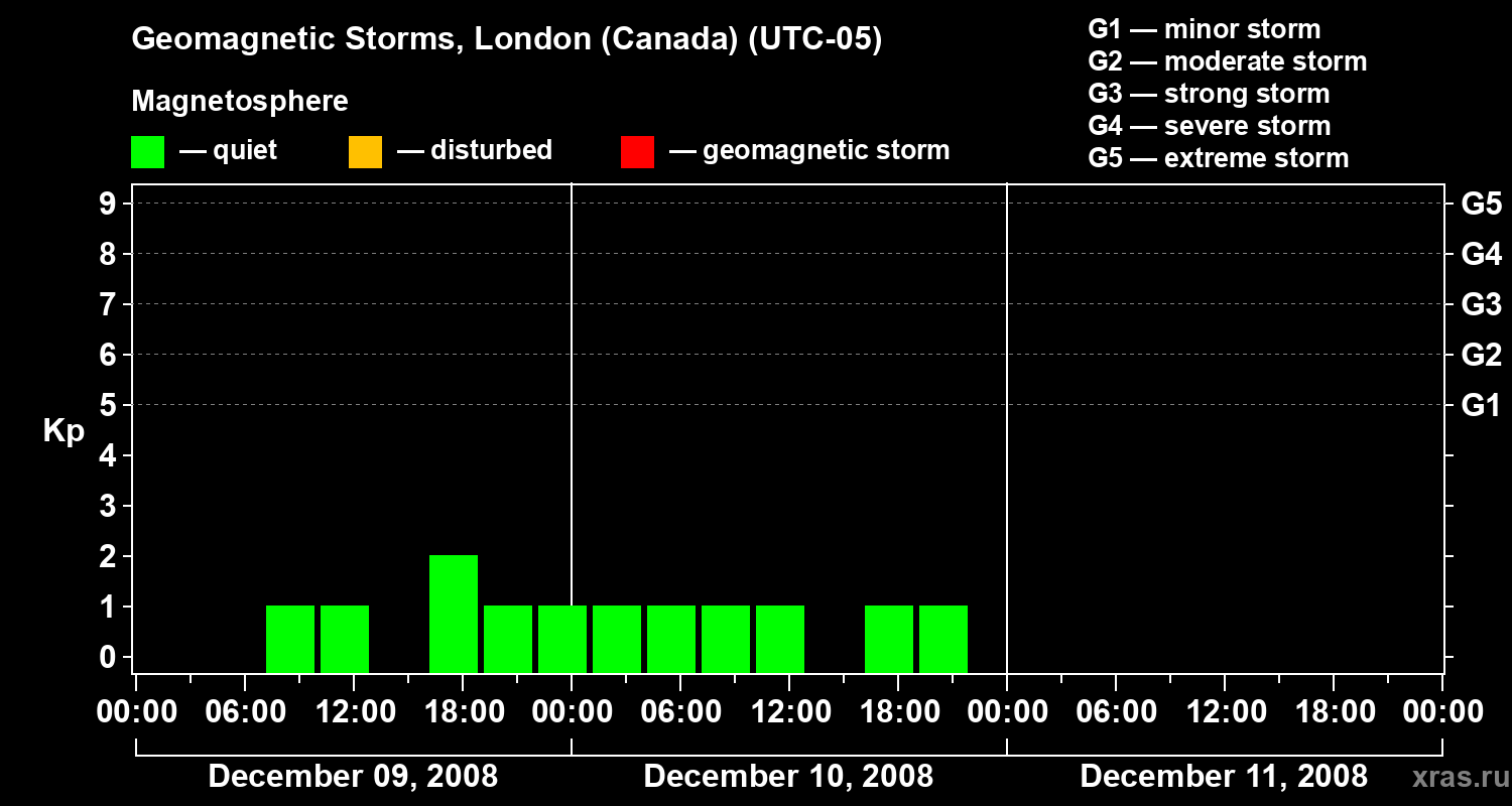 Geomagnetic storms in London (Canada) — Dec 11, 2008