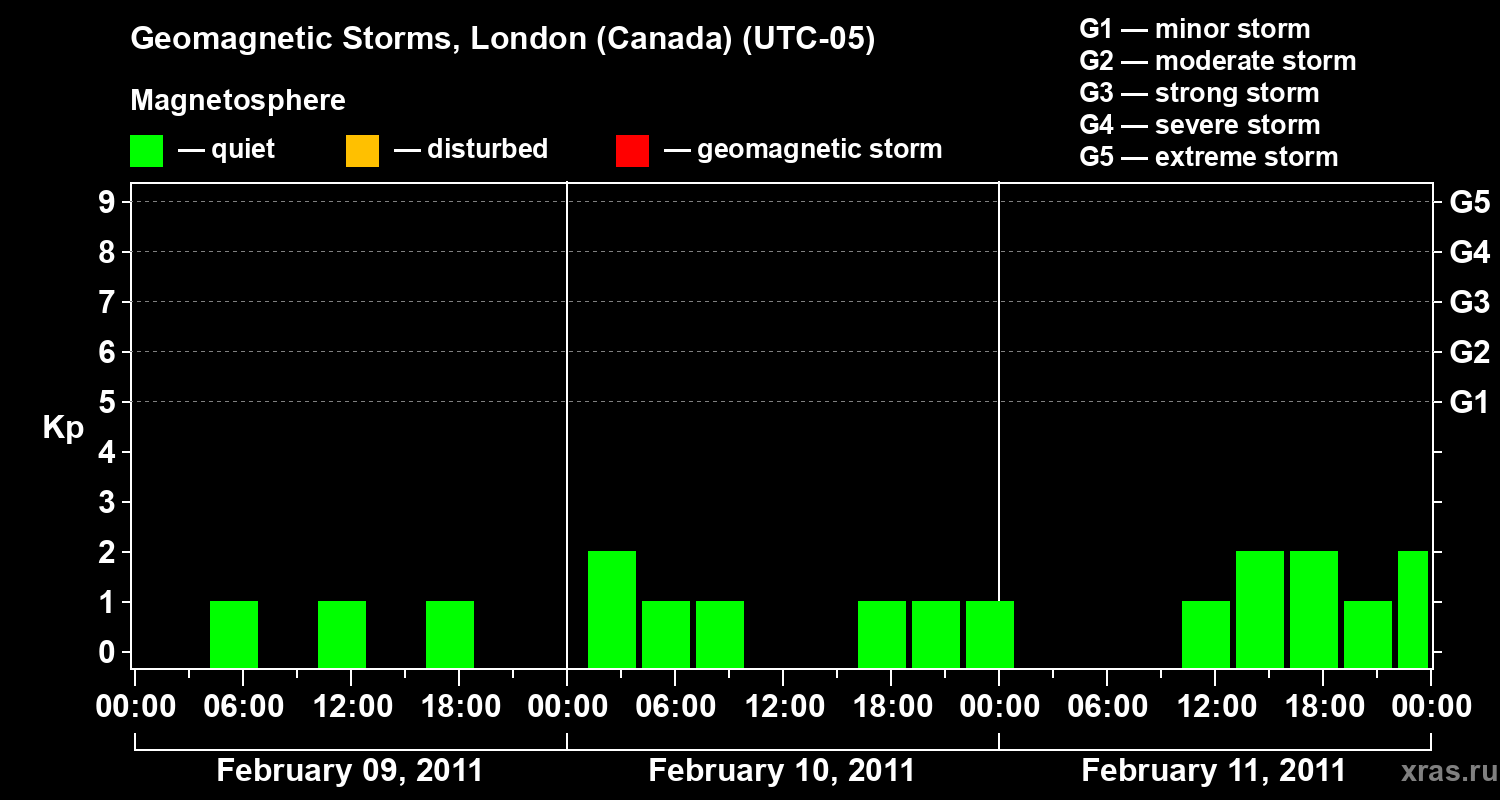 Geomagnetic storms in London (Canada) — Feb 11, 2011
