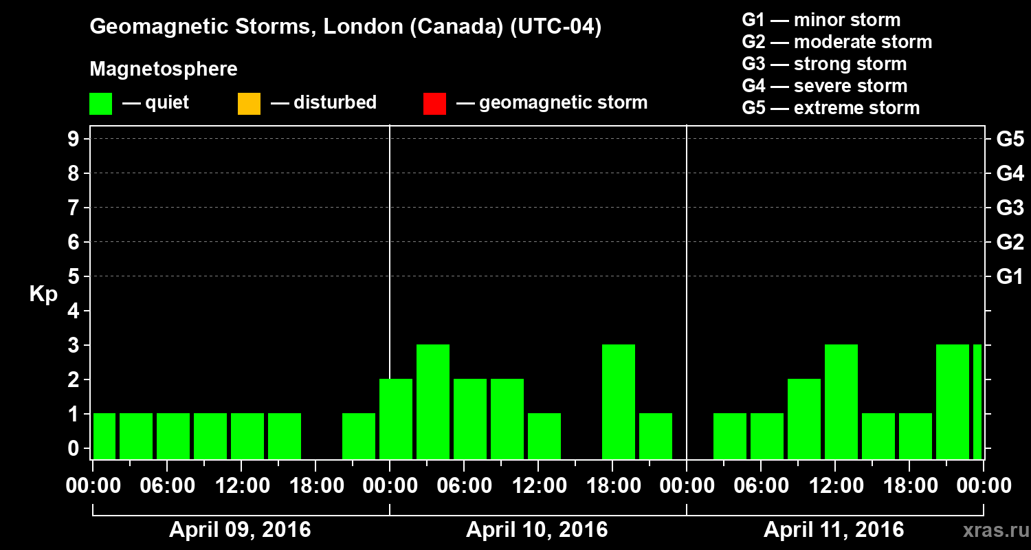 Geomagnetic storms in London (Canada) — Apr 11, 2016