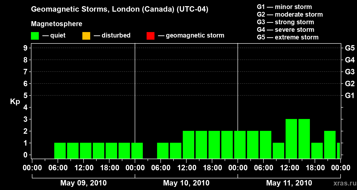 Geomagnetic storms in London (Canada) on May 11, 2010