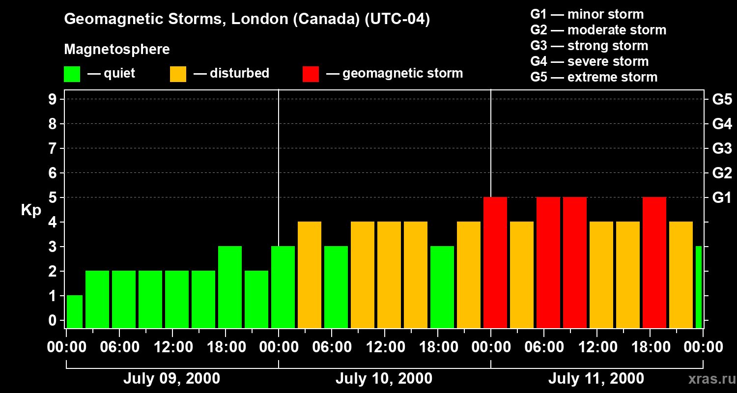 Geomagnetic storms in London (Canada) — Jul 11, 2000