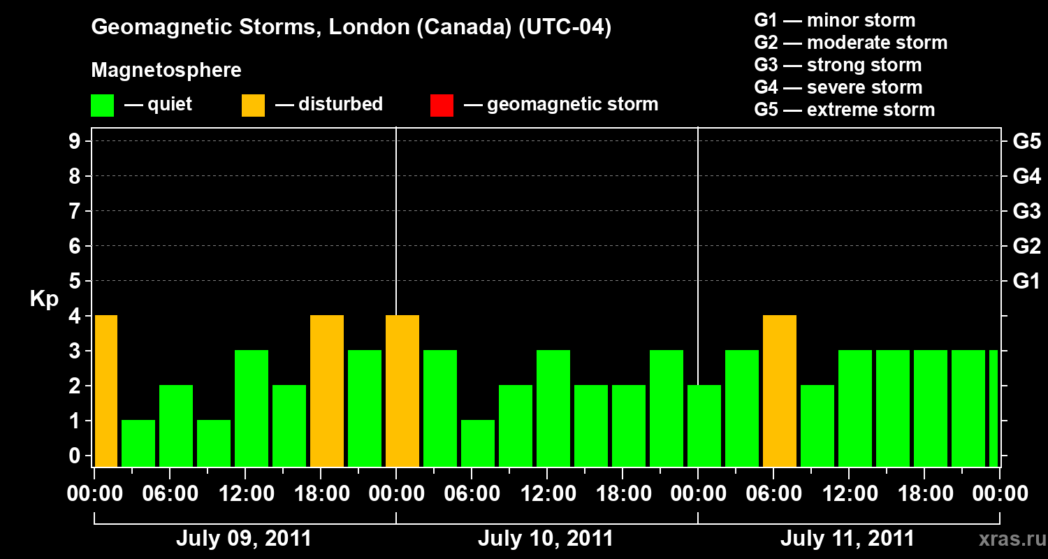 Geomagnetic storms in London (Canada) — Jul 11, 2011