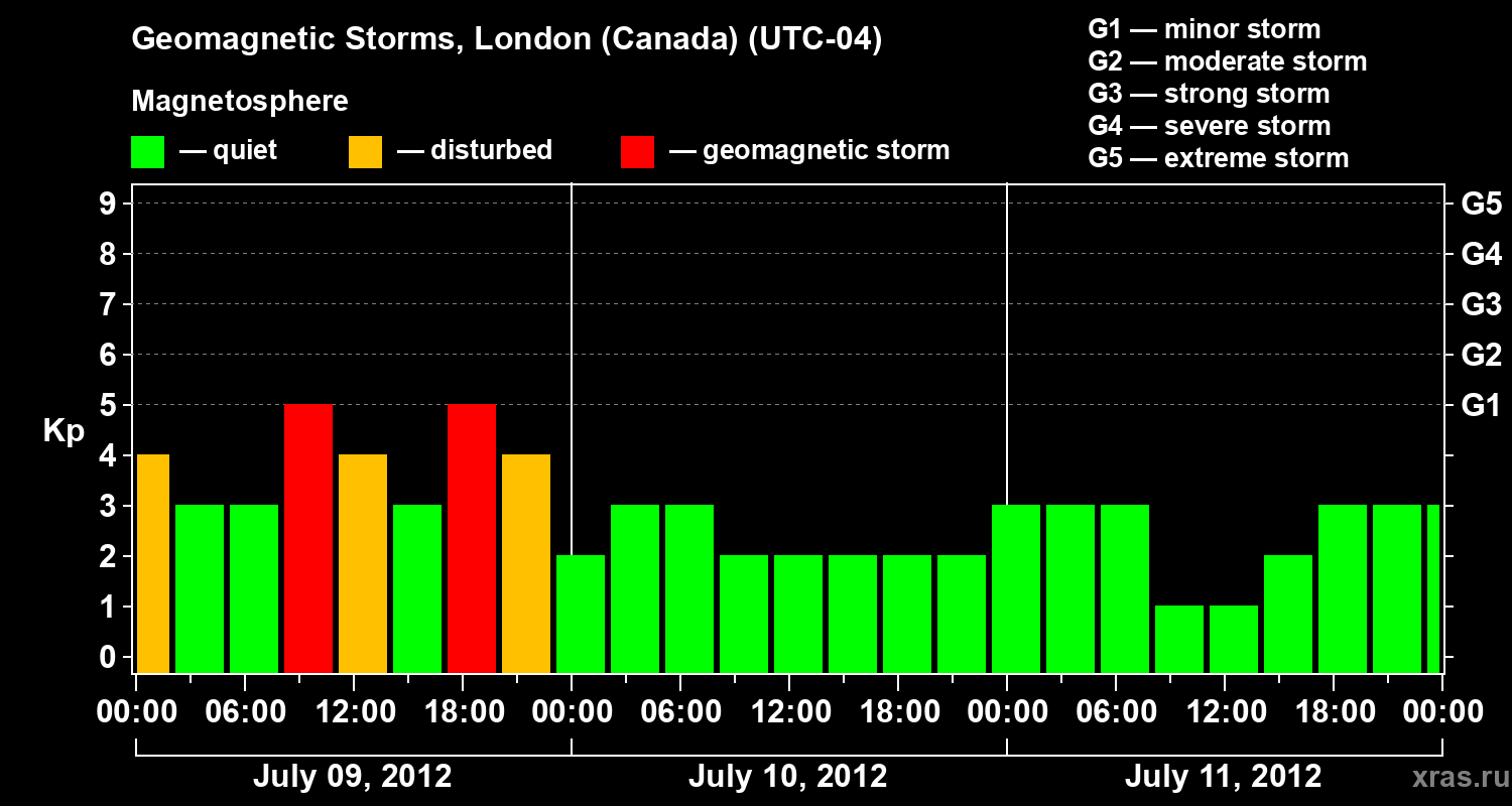 Geomagnetic storms in London (Canada) — Jul 11, 2012
