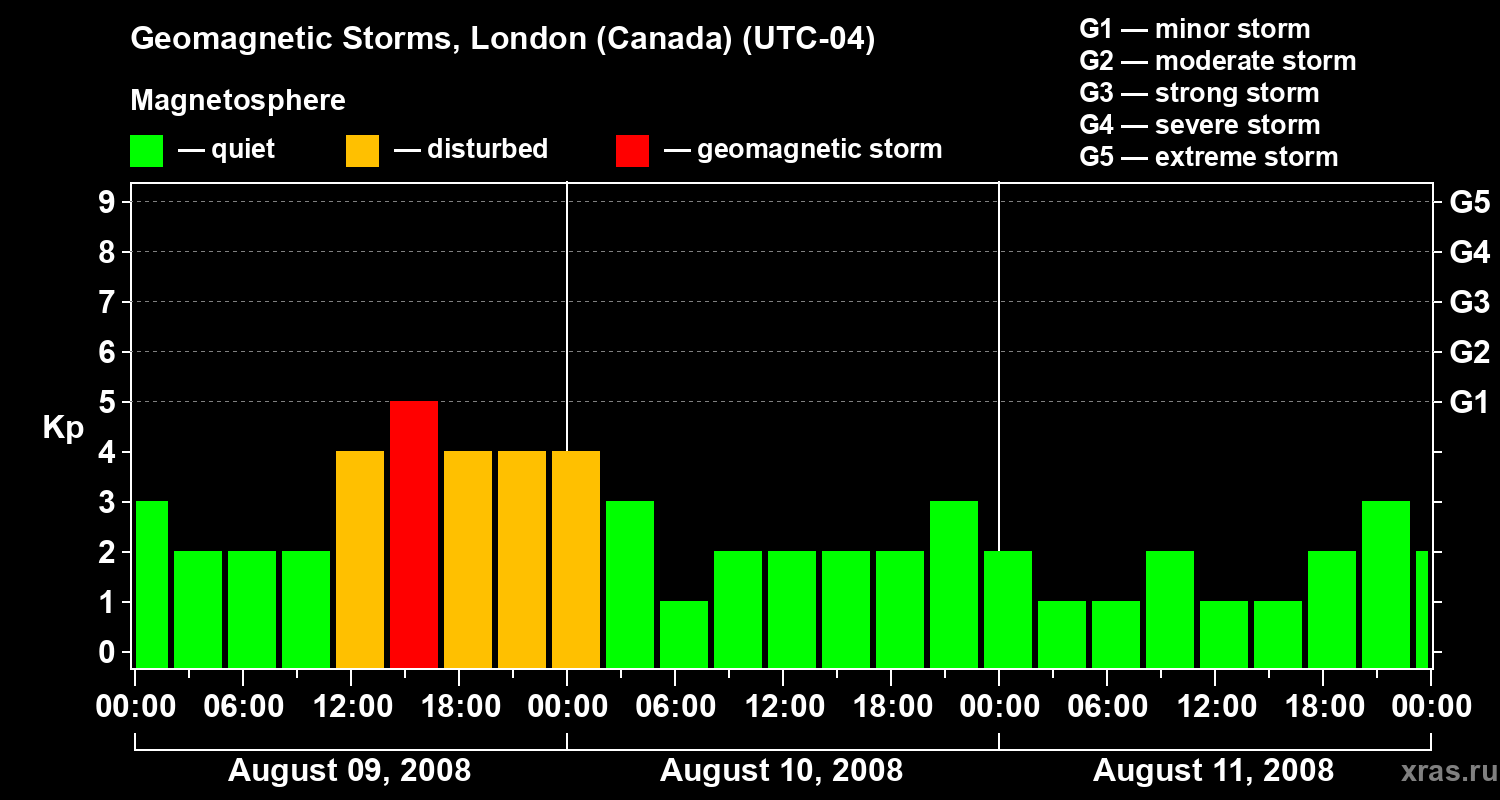 Geomagnetic storms in London (Canada) — Aug 11, 2008
