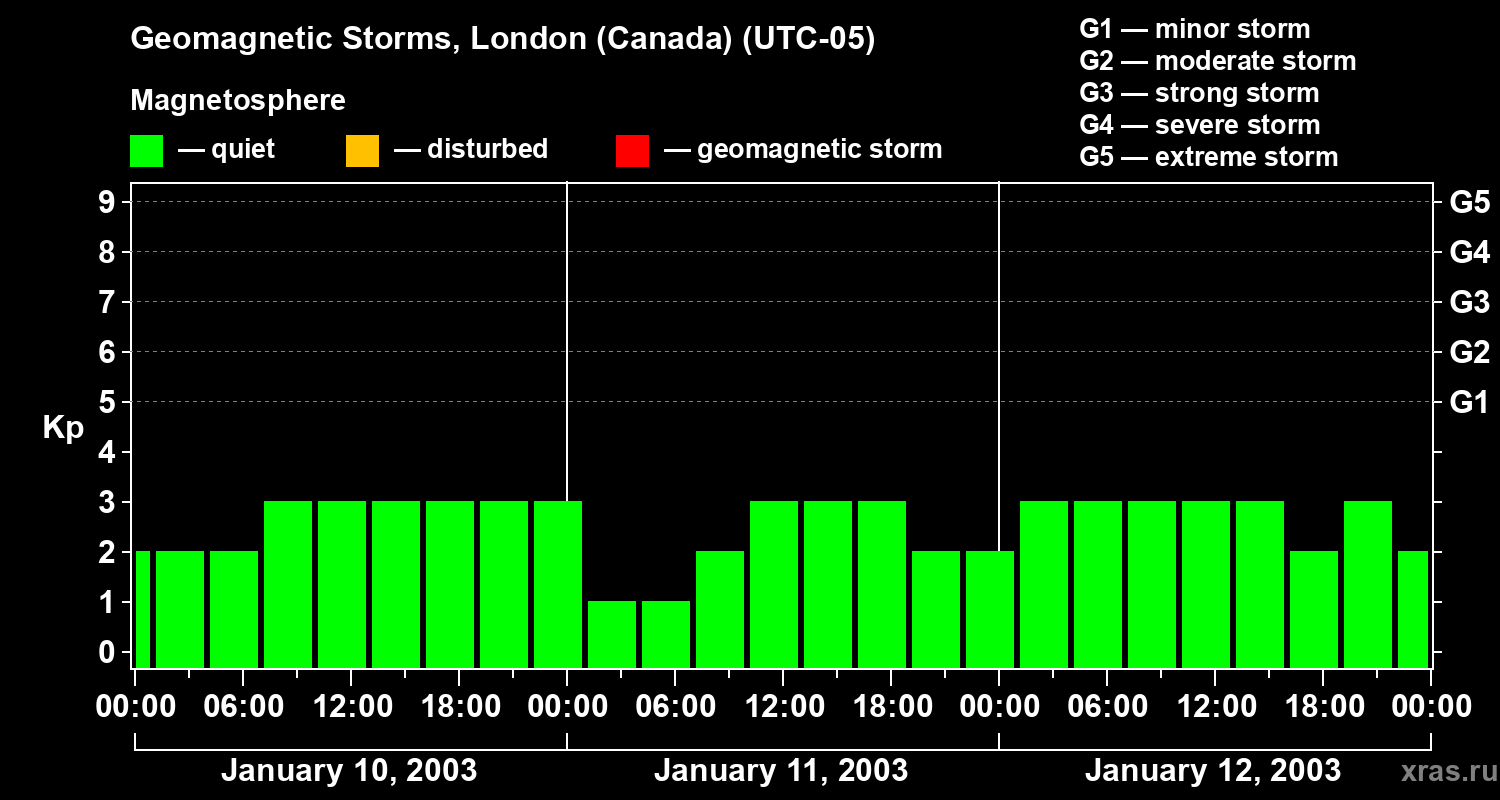 Geomagnetic storms in London (Canada) on Jan 12, 2003