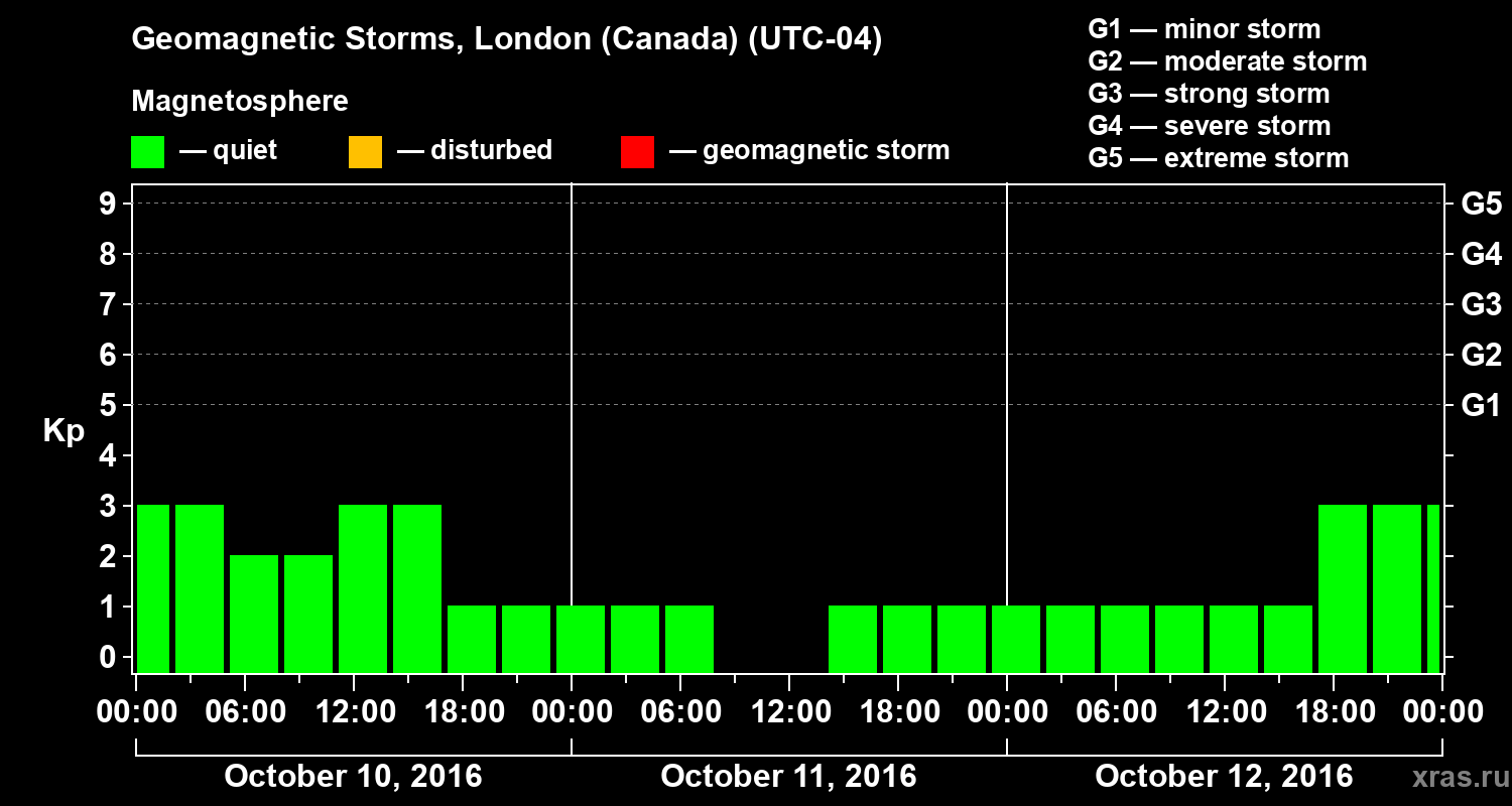 Geomagnetic storms in London (Canada) — Oct 12, 2016