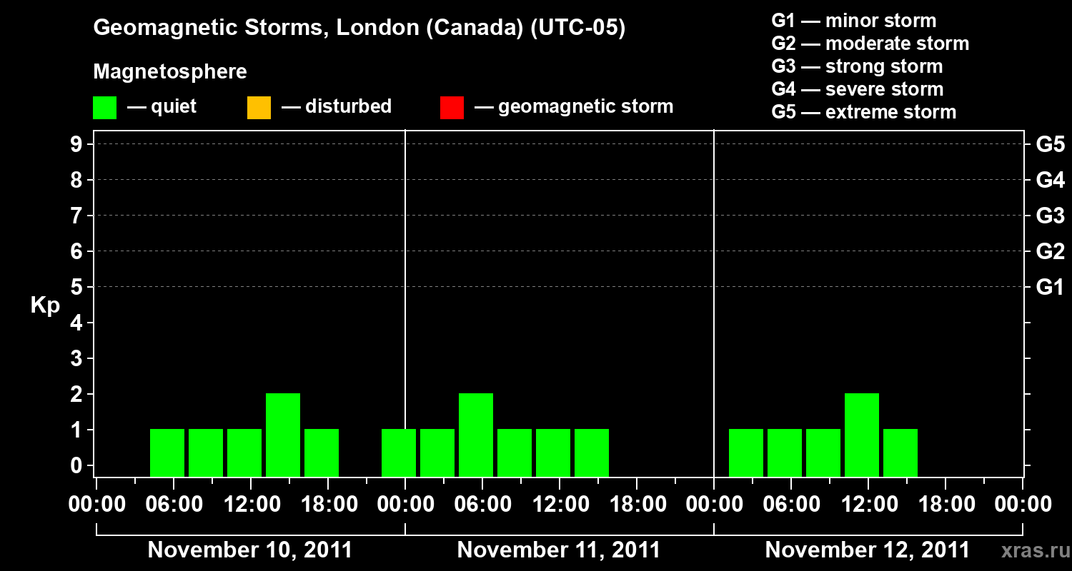 Geomagnetic storms in London (Canada) on Nov 12, 2011