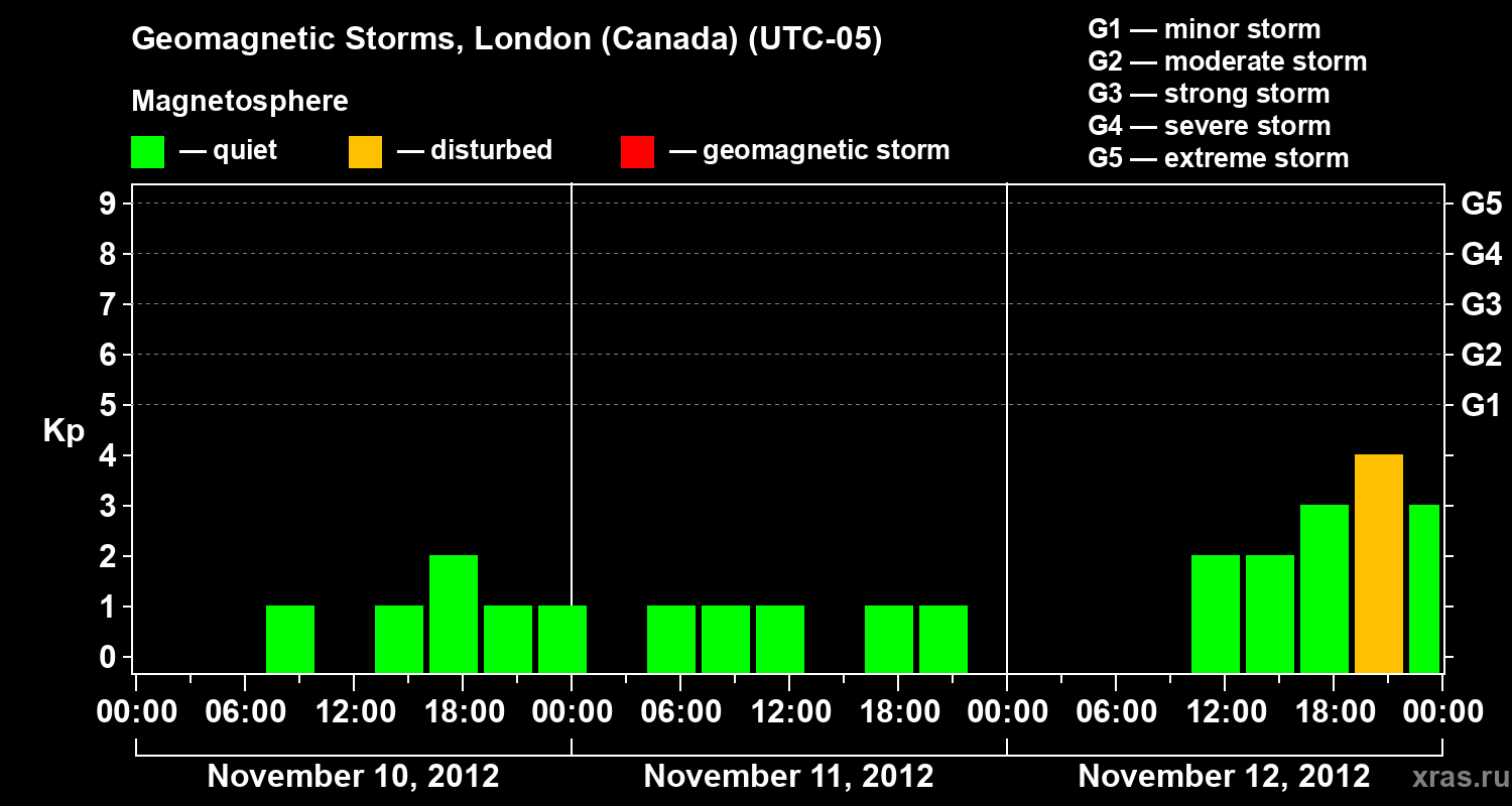 Geomagnetic storms in London (Canada) on Nov 12, 2012