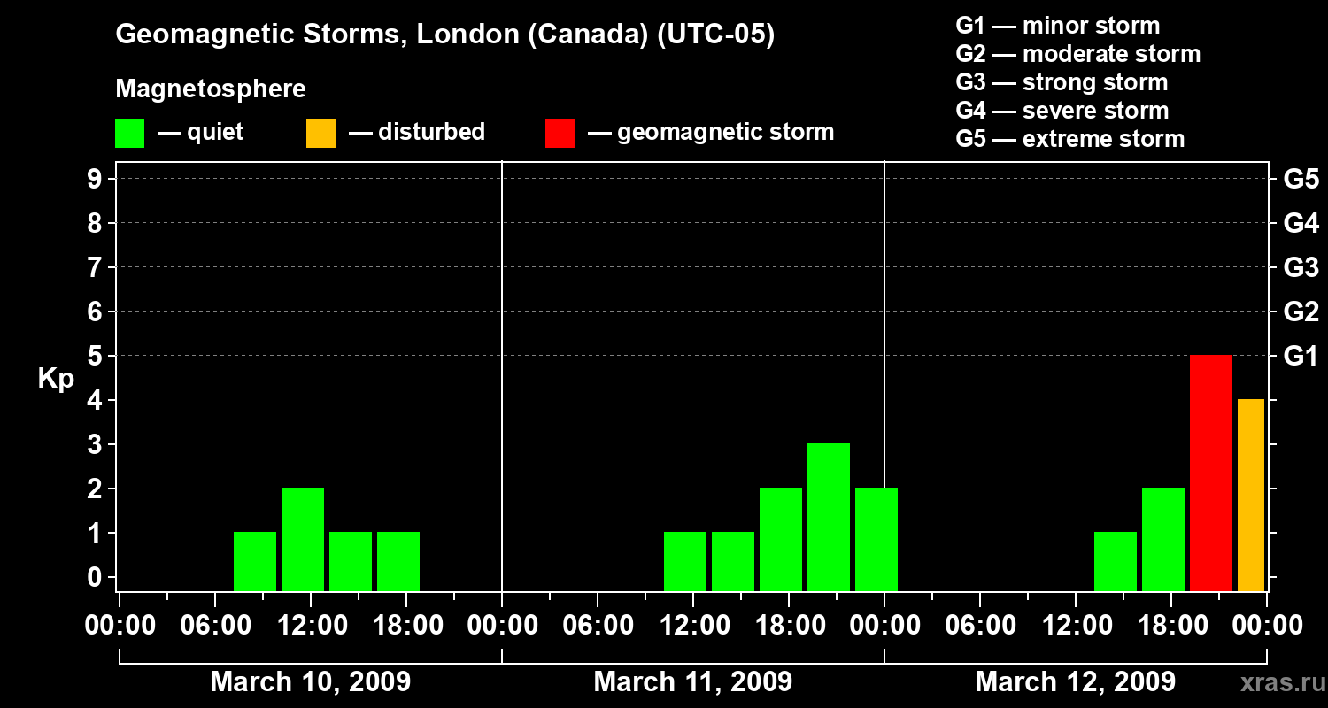 Geomagnetic storms in London (Canada) — Mar 12, 2009
