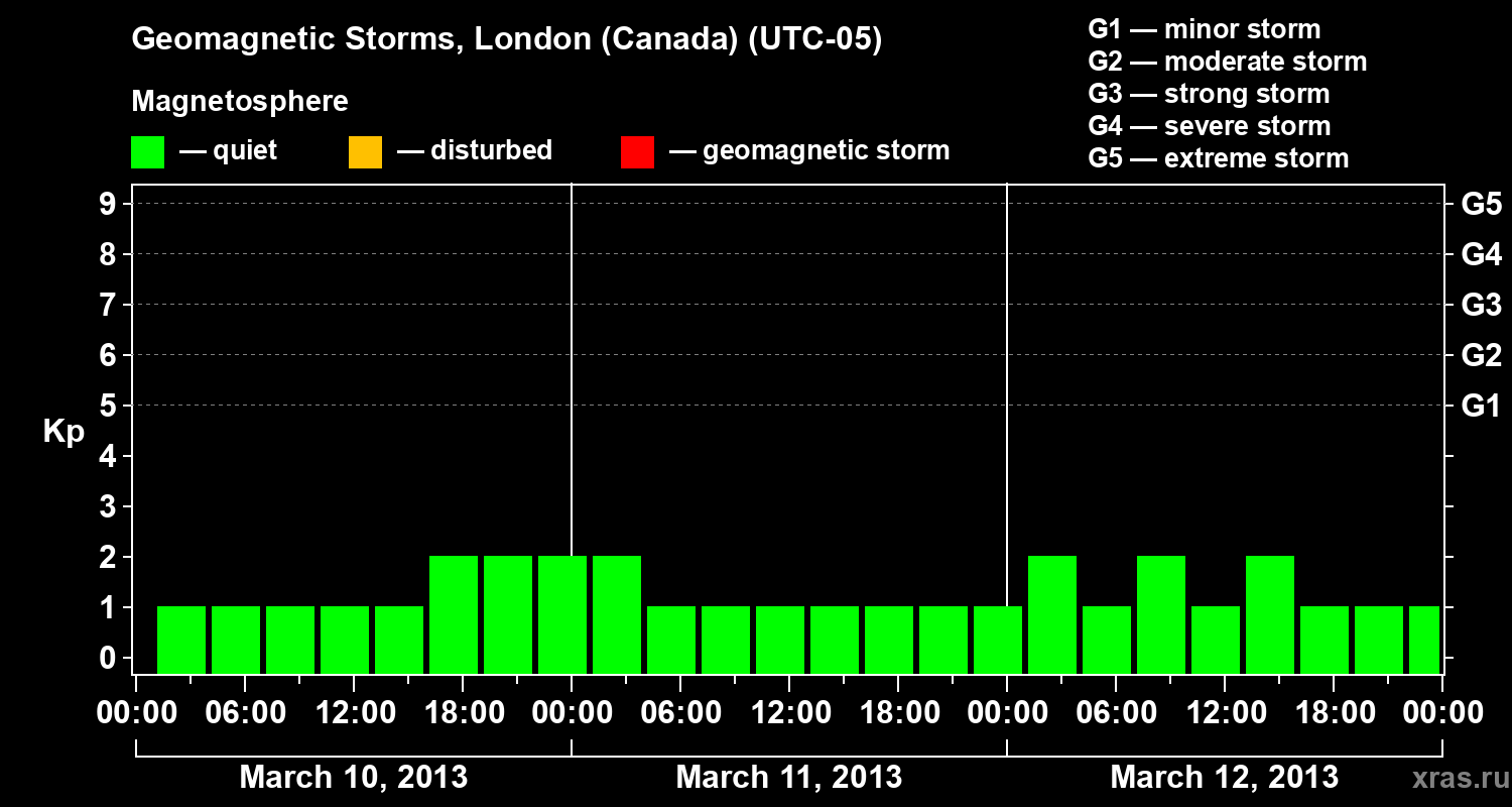 Geomagnetic storms in London (Canada) — Mar 12, 2013