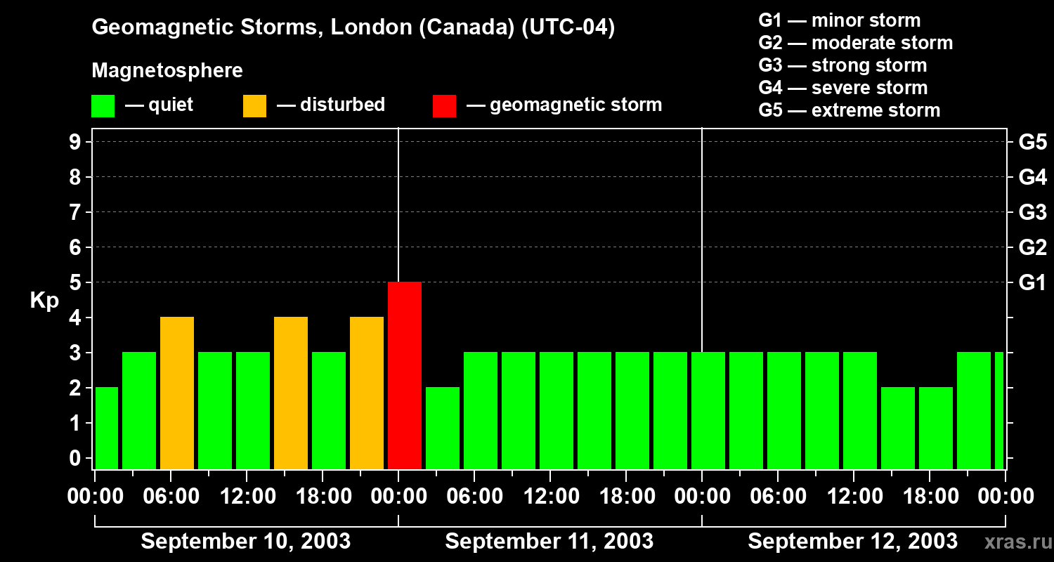 Geomagnetic storms in London (Canada) on Sep 12, 2003