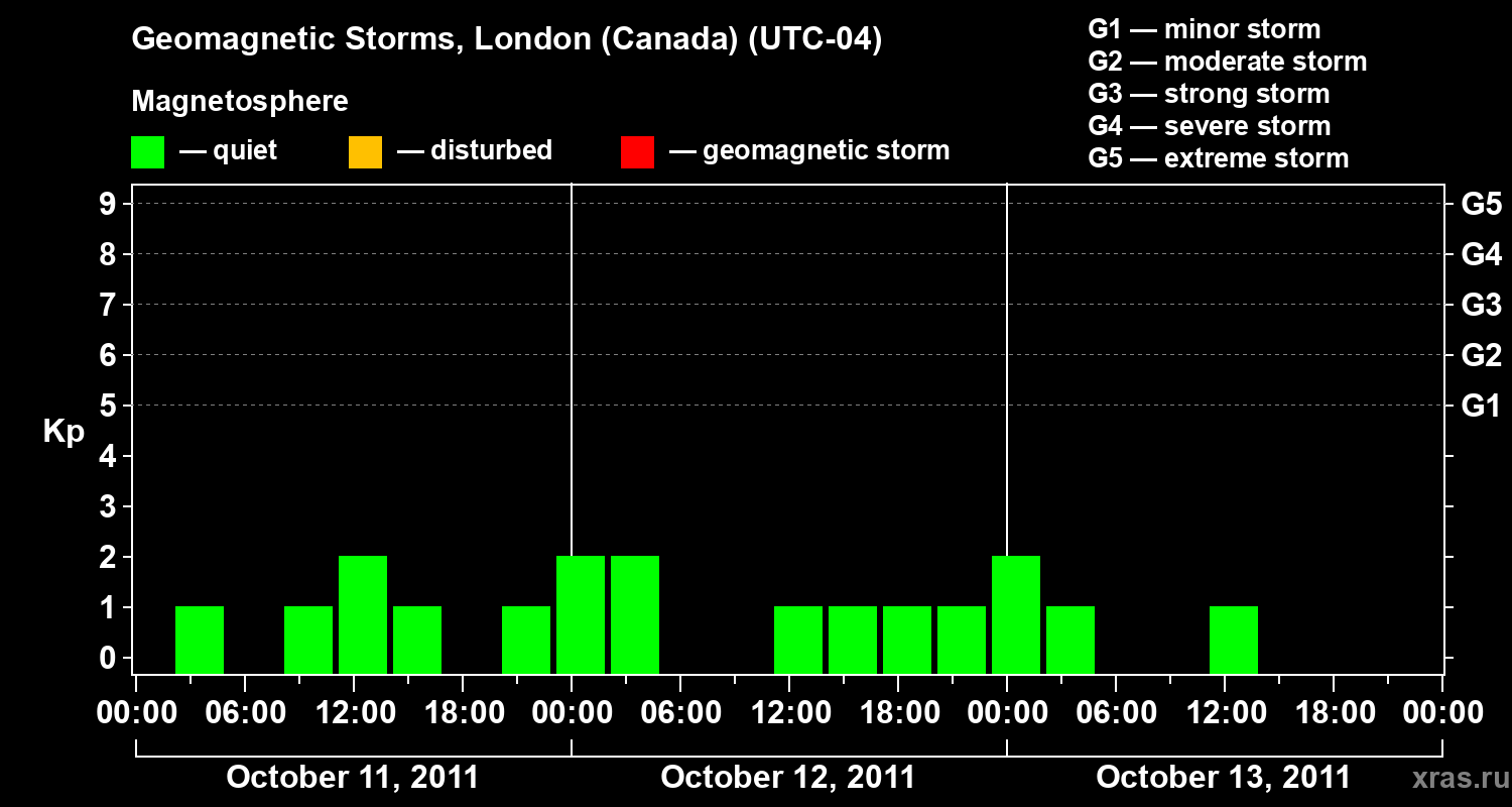 Geomagnetic storms in London (Canada) on Oct 13, 2011