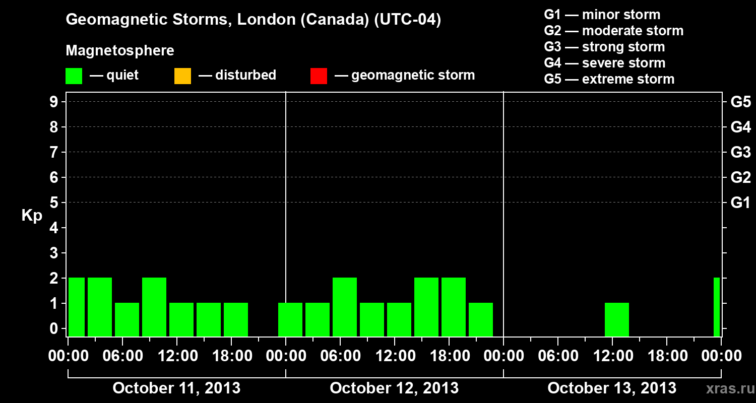 Geomagnetic storms in London (Canada) on Oct 13, 2013