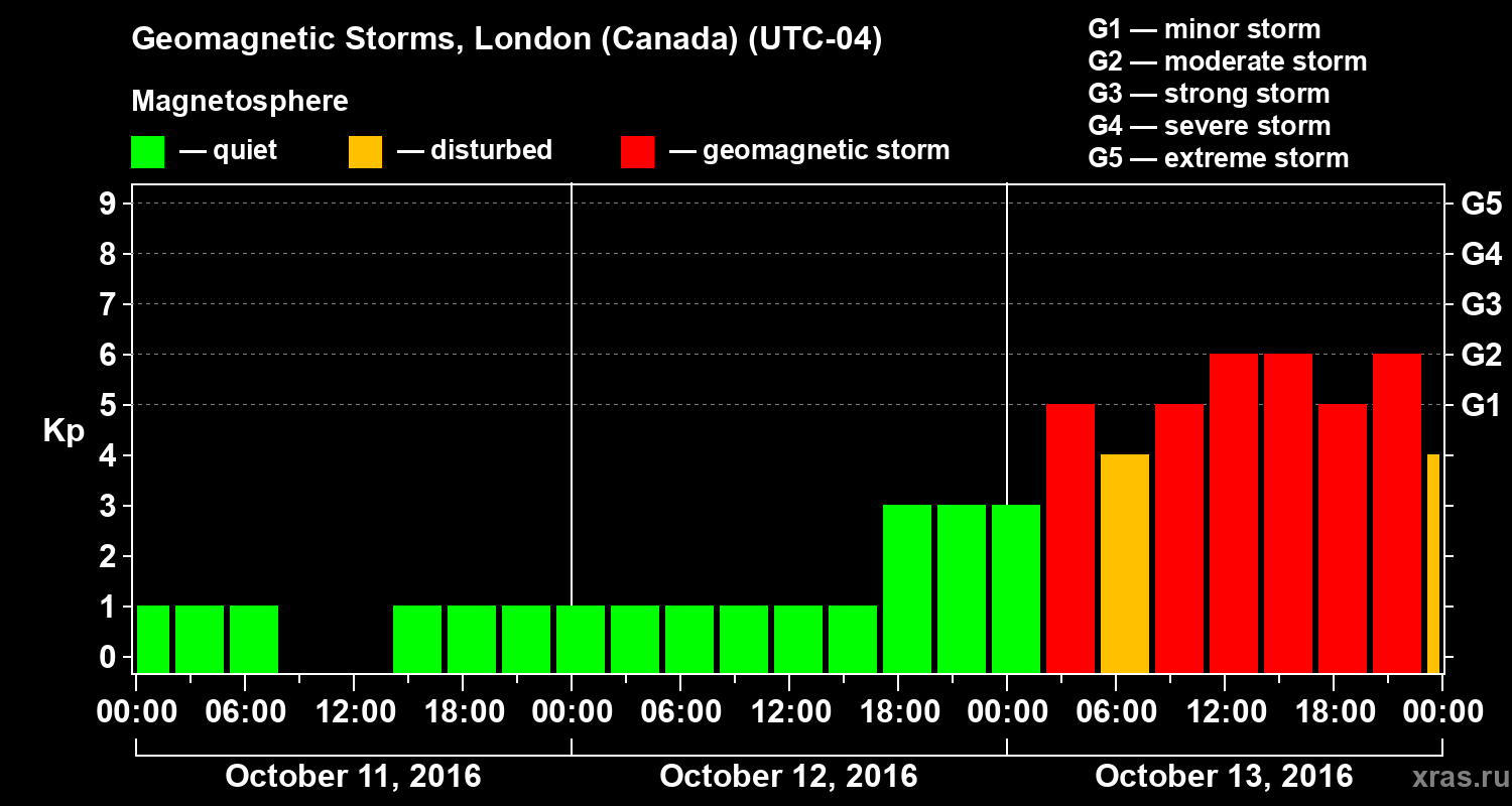 Geomagnetic storms in London (Canada) — Oct 13, 2016
