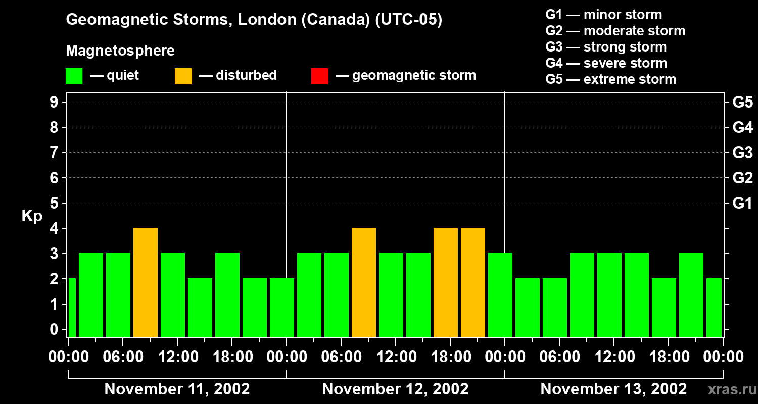 Geomagnetic storms in London (Canada) on Nov 13, 2002