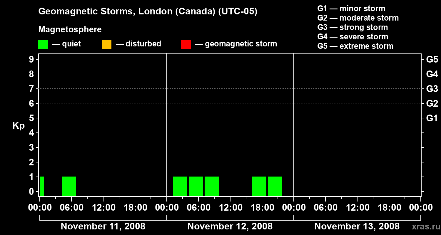 Geomagnetic storms in London (Canada) — Nov 13, 2008