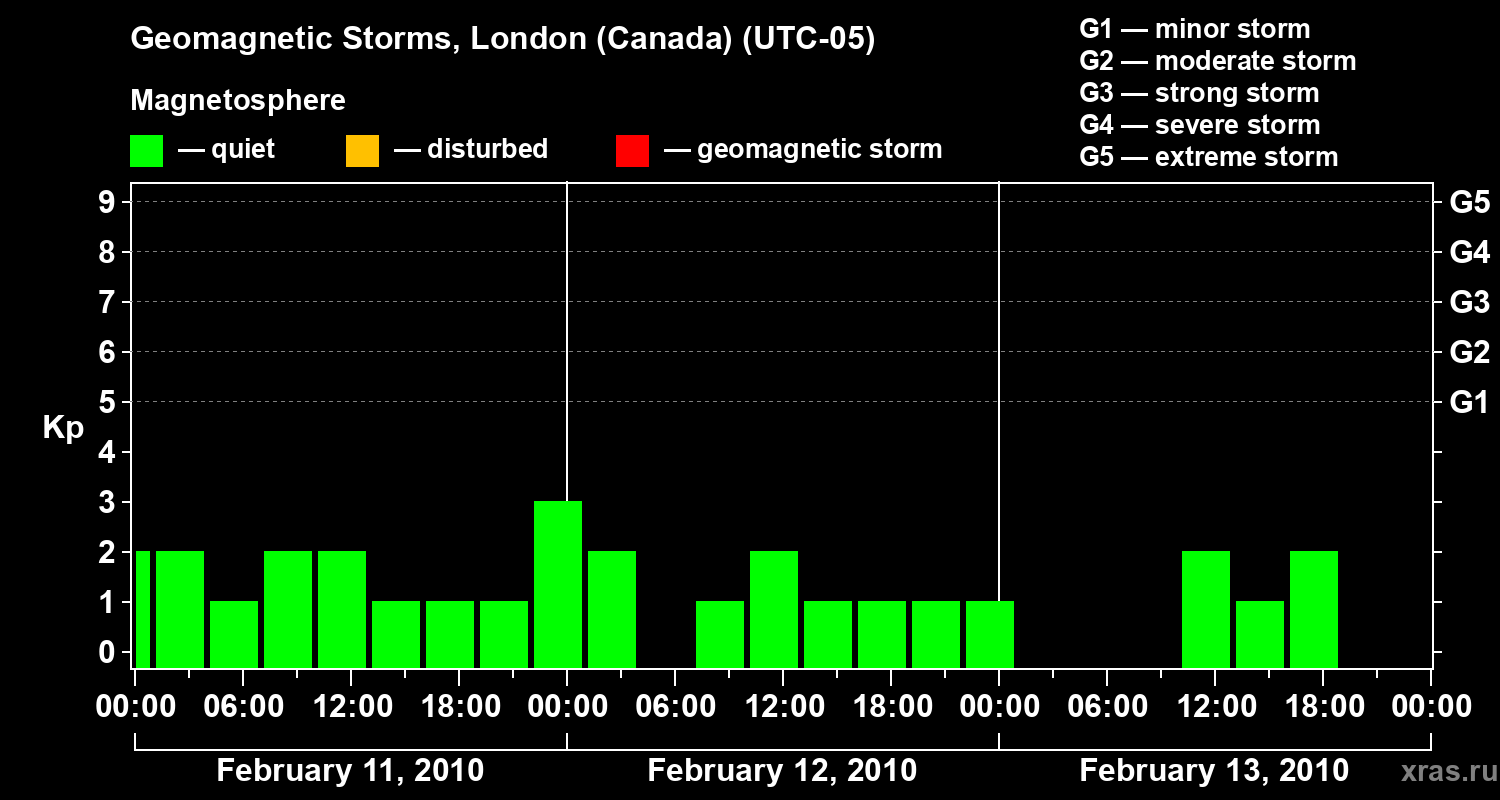 Geomagnetic storms in London (Canada) — Feb 13, 2010