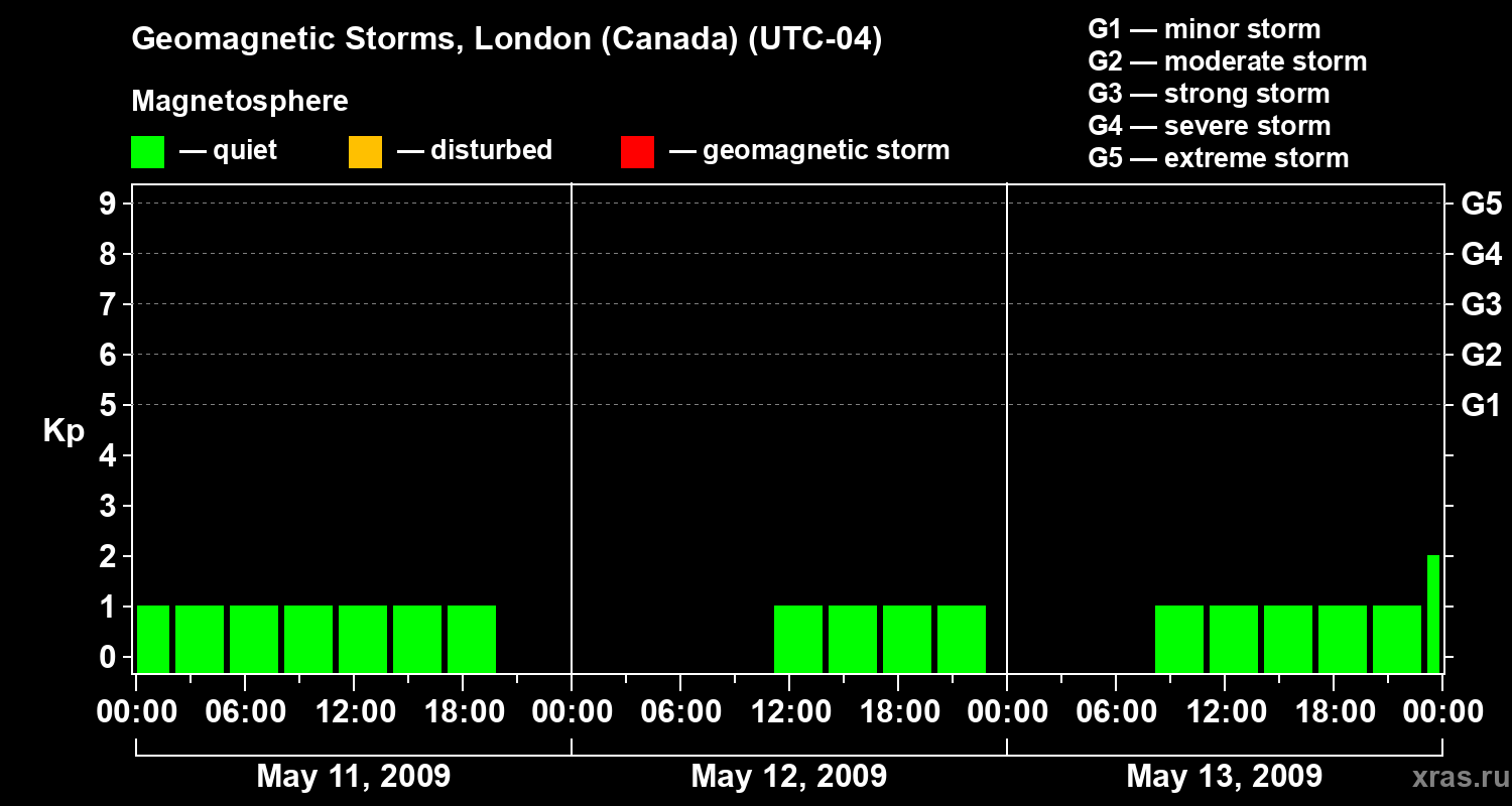 Geomagnetic storms in London (Canada) on May 13, 2009
