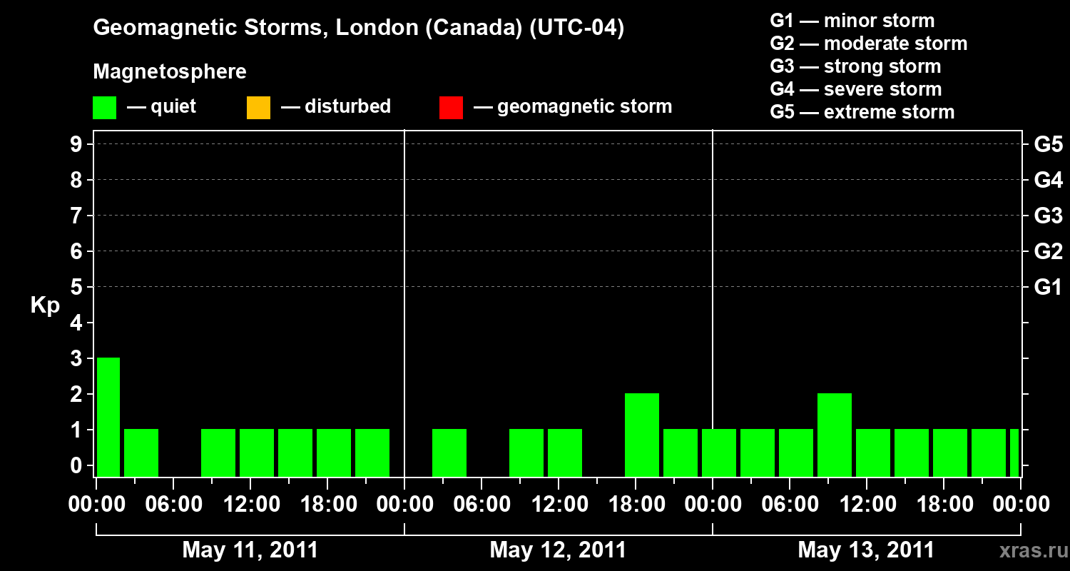 Geomagnetic storms in London (Canada) — May 13, 2011