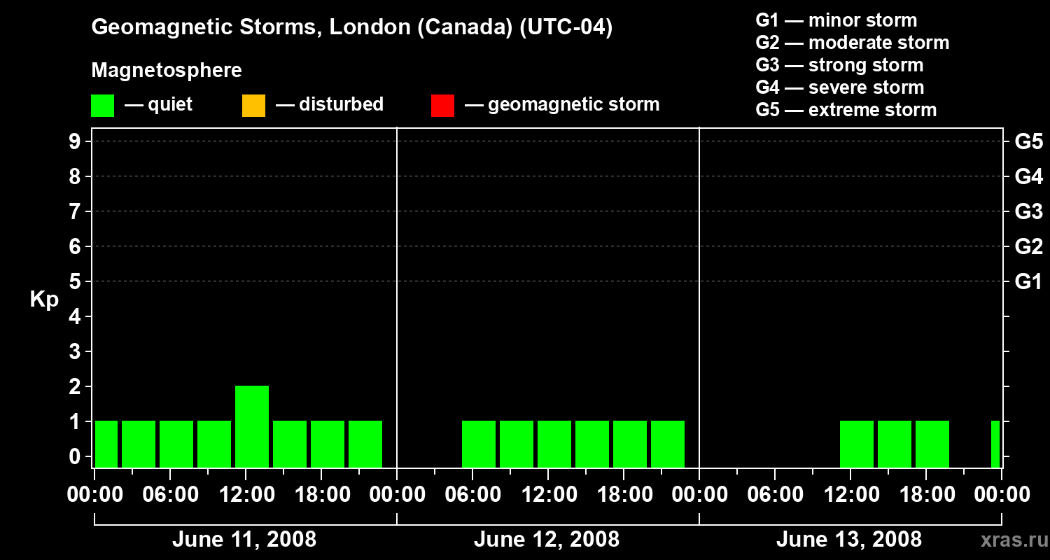 Geomagnetic storms in London (Canada) — Jun 13, 2008