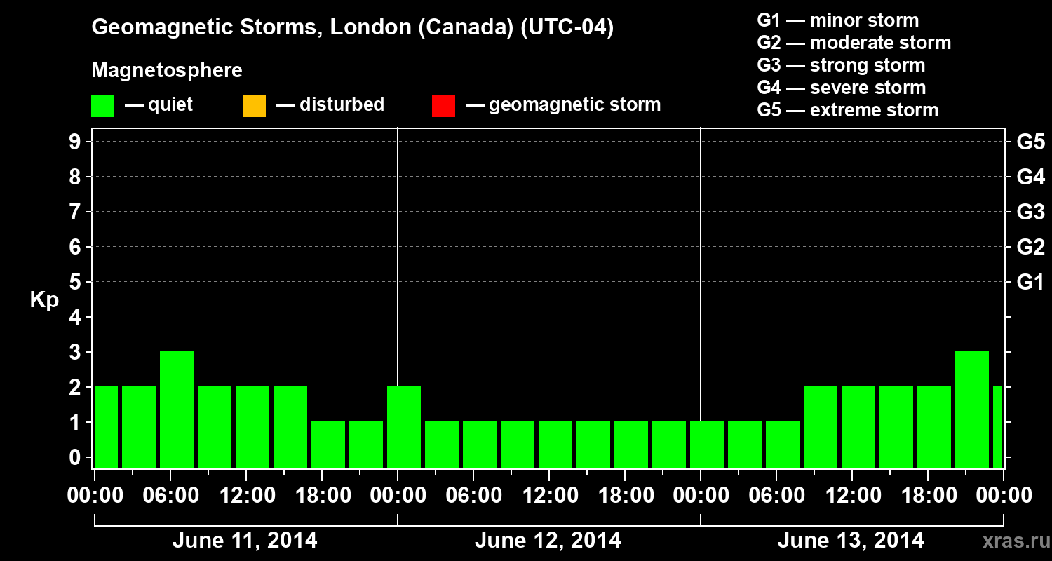 Geomagnetic storms in London (Canada) — Jun 13, 2014
