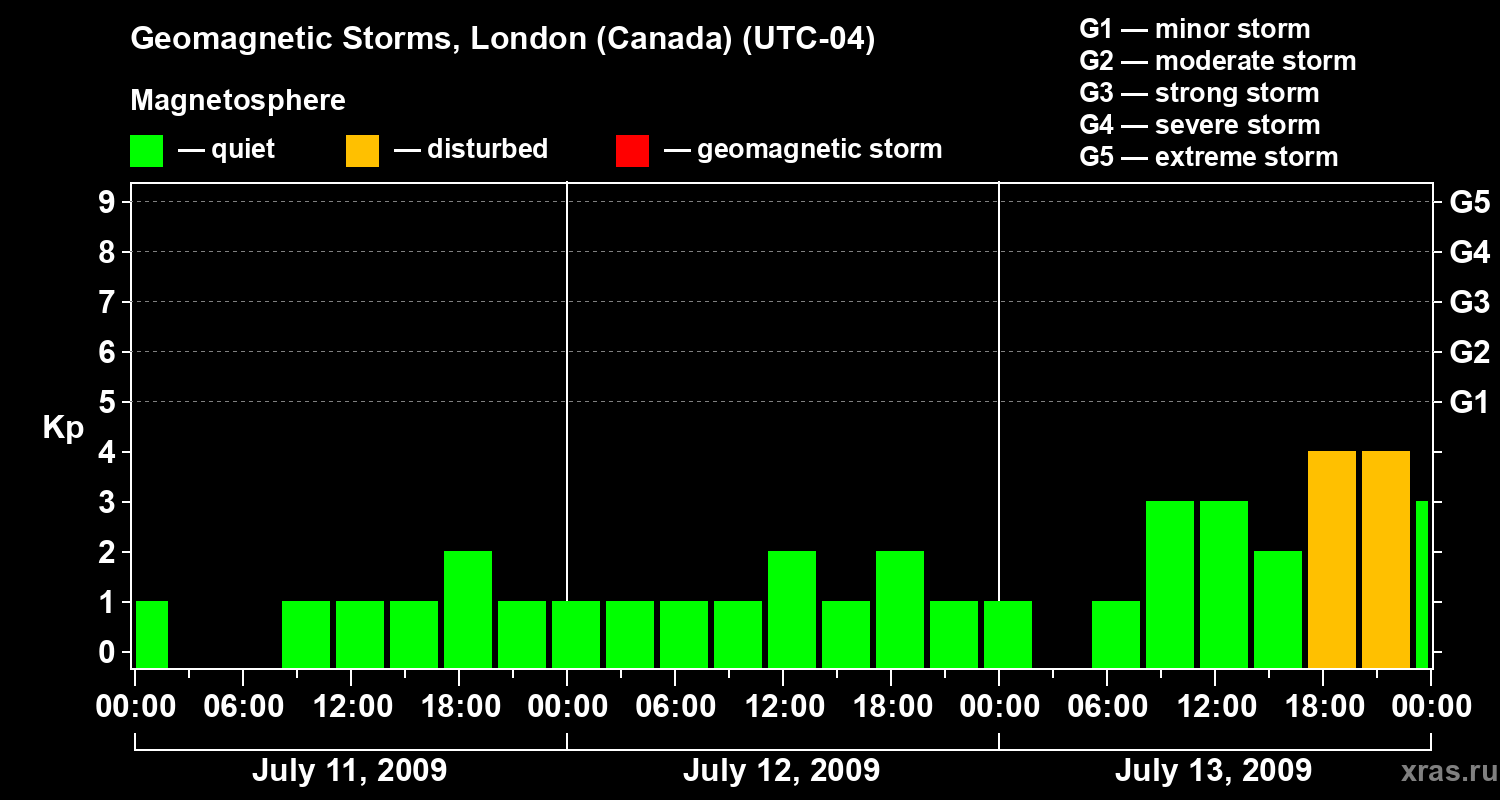 Geomagnetic storms in London (Canada) — Jul 13, 2009