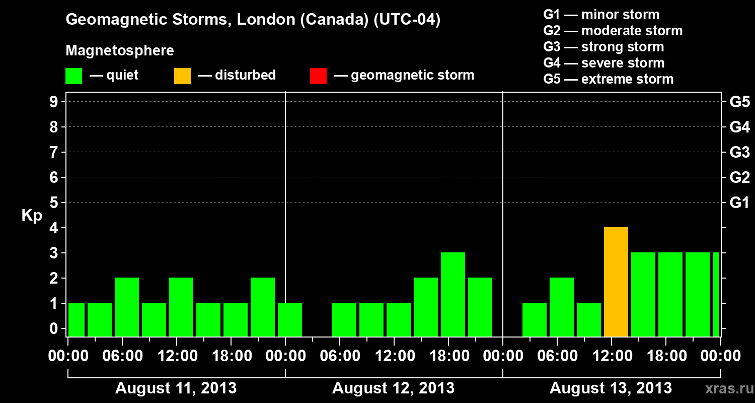 Geomagnetic storms in London (Canada) on Aug 13, 2013