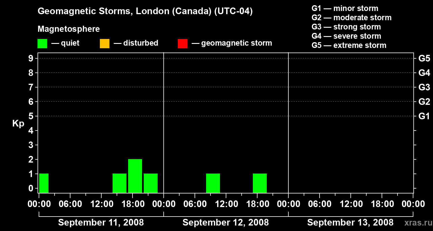 Geomagnetic storms in London (Canada) on Sep 13, 2008
