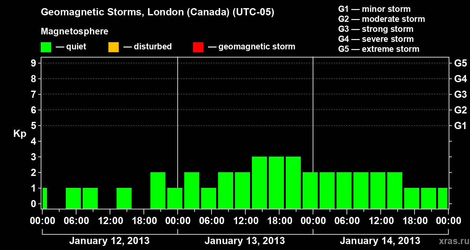 Geomagnetic storms in London (Canada) on Jan 14, 2013