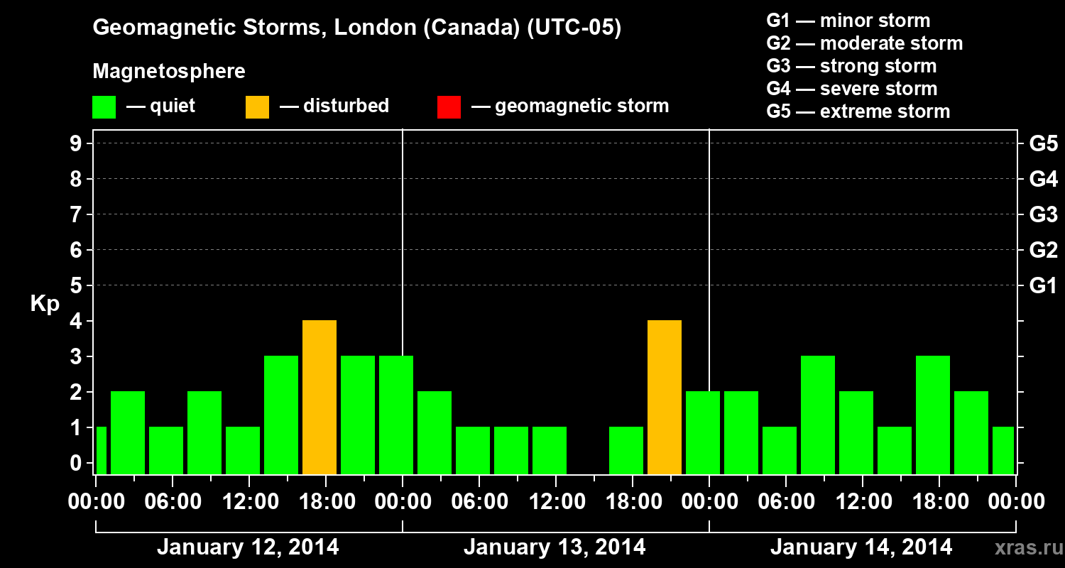 Geomagnetic storms in London (Canada) on Jan 14, 2014