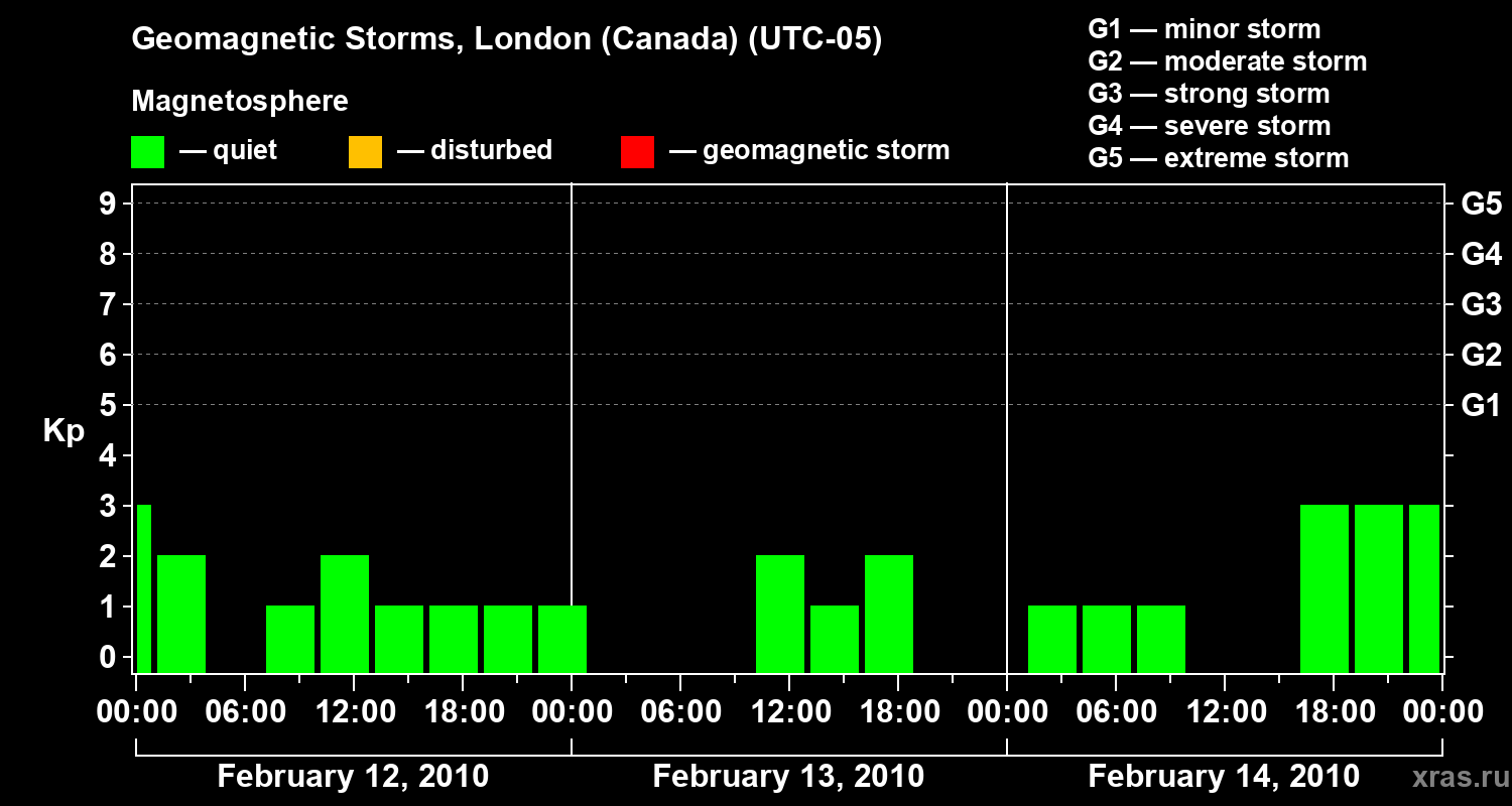 Geomagnetic storms in London (Canada) — Feb 14, 2010
