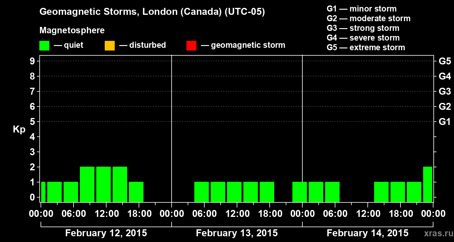 Geomagnetic storms in London (Canada) in February 2015