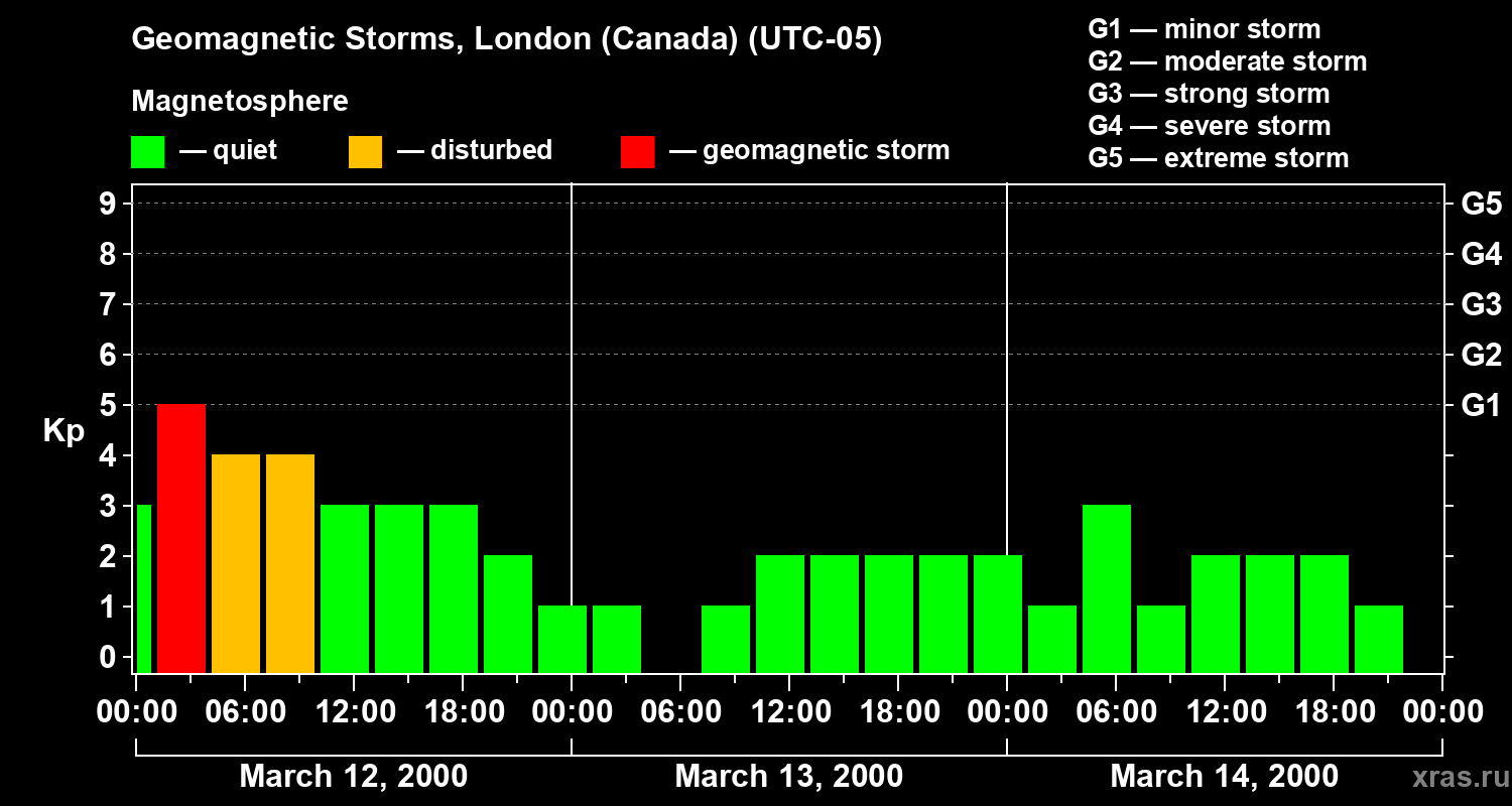 Geomagnetic storms in London (Canada) — Mar 14, 2000