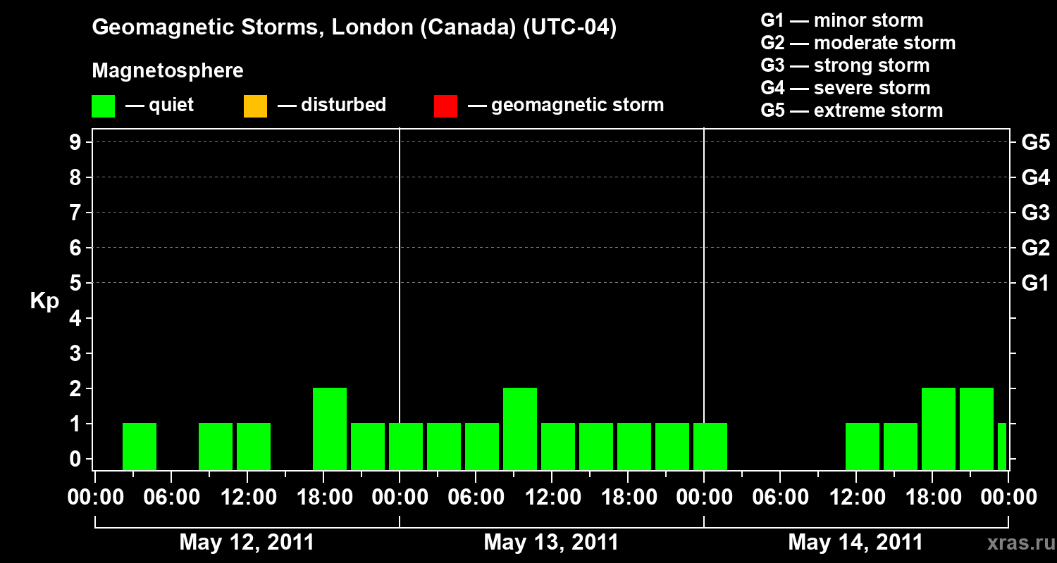 Geomagnetic storms in London (Canada) — May 14, 2011