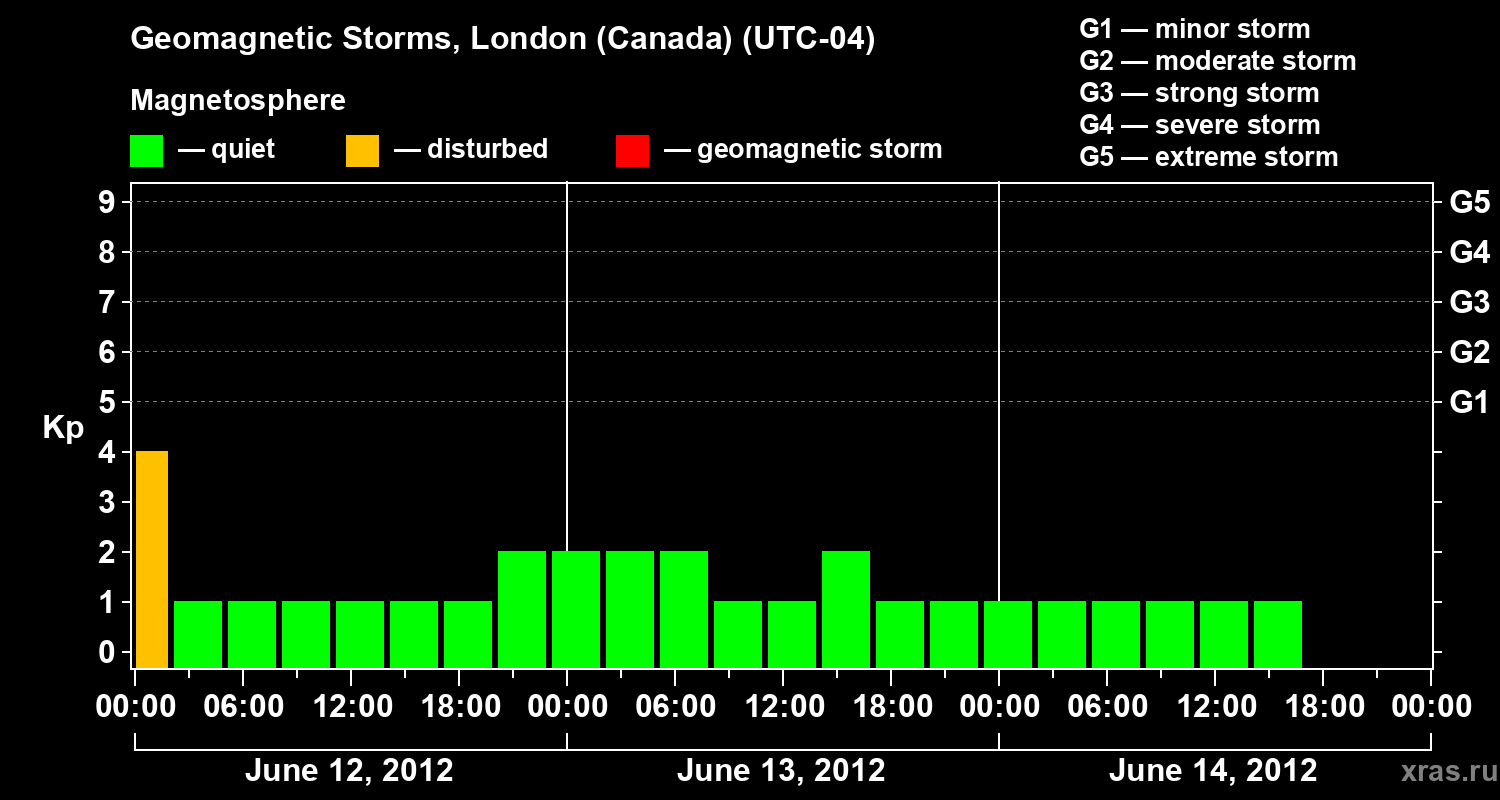 Geomagnetic storms in London (Canada) — Jun 14, 2012
