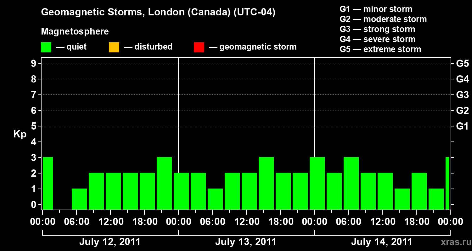 Geomagnetic storms in London (Canada) — Jul 14, 2011