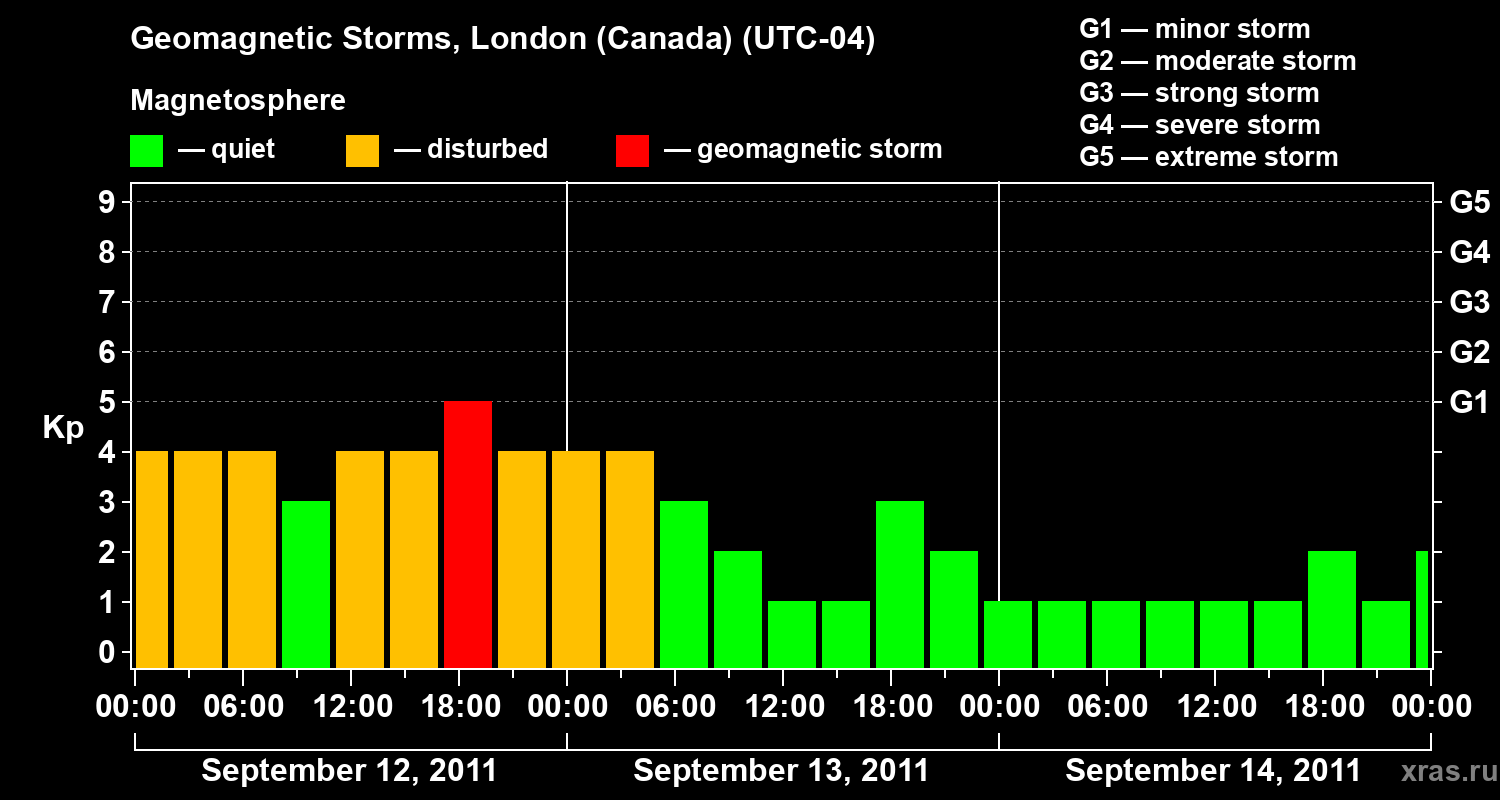 Geomagnetic storms in London (Canada) — Sep 14, 2011