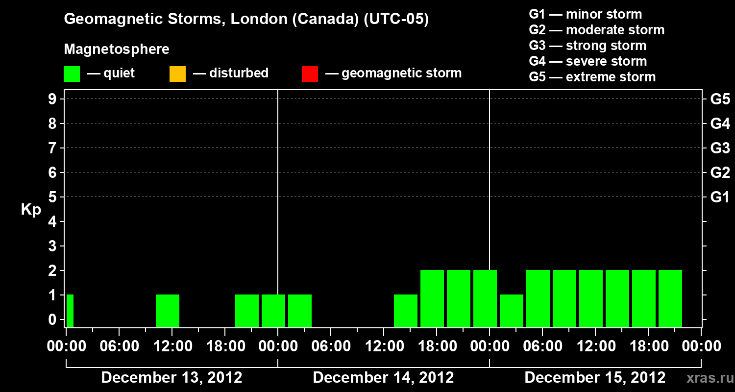 Geomagnetic storms in London (Canada) — Dec 15, 2012