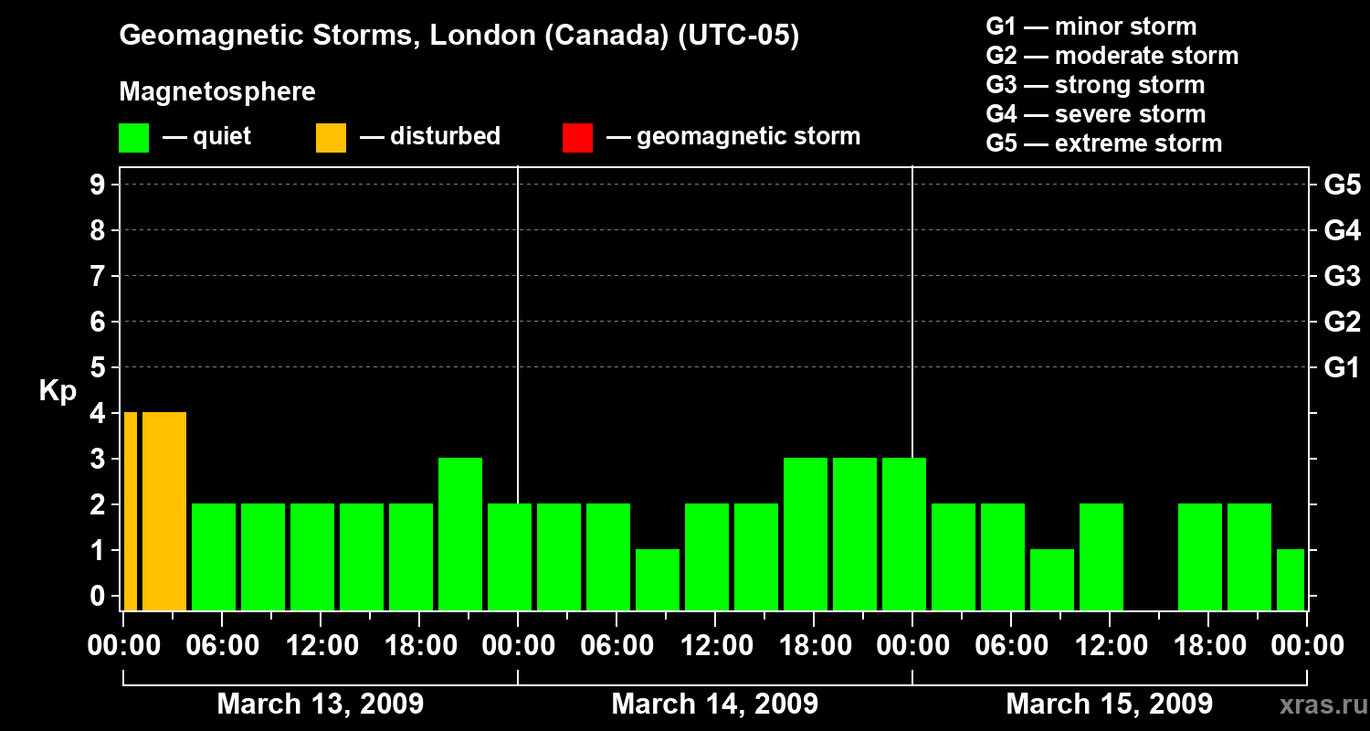 Geomagnetic storms in London (Canada) on Mar 15, 2009