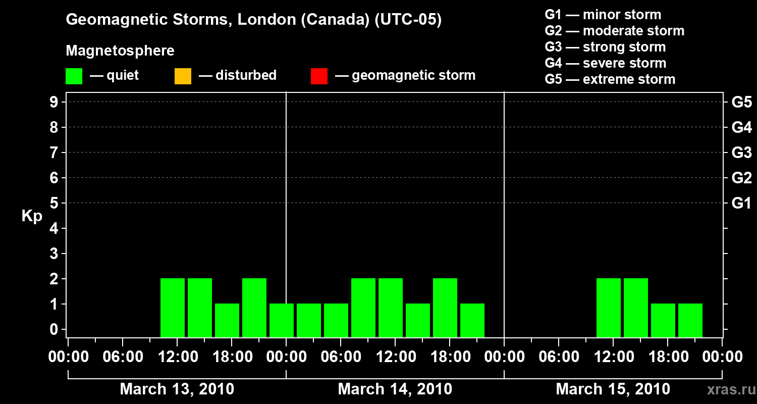Geomagnetic storms in London (Canada) — Mar 15, 2010