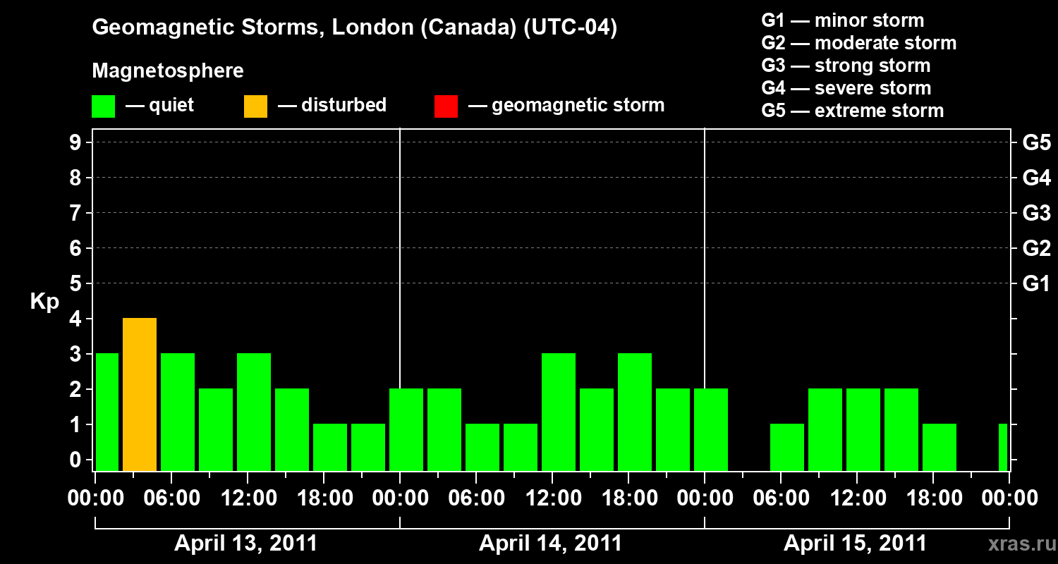 Geomagnetic storms in London (Canada) — Apr 15, 2011