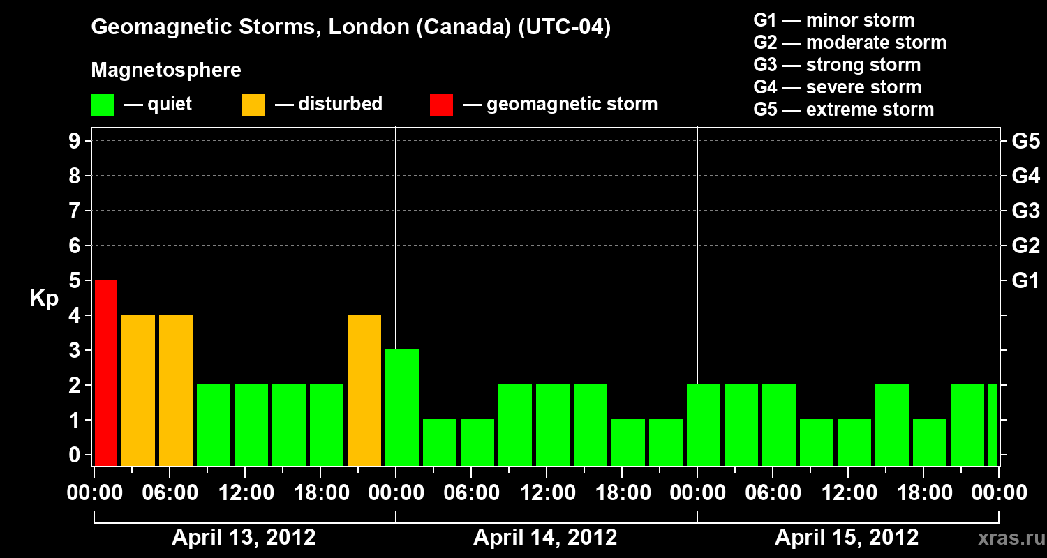 Geomagnetic storms in London (Canada) in April 2012