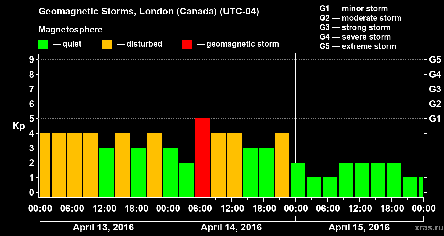 Geomagnetic storms in London (Canada) — Apr 15, 2016