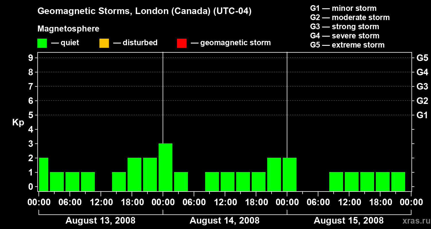Geomagnetic storms in London (Canada) — Aug 15, 2008